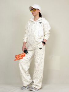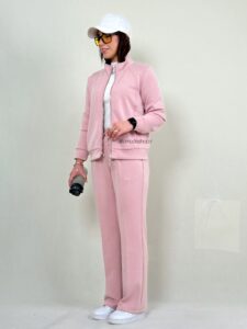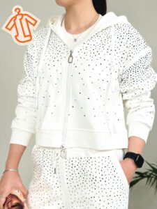 سویشرت و شلوار نگینی با نگینهای ظریف روی پارچهاش برق خاصی داره که توی نور پاییزی فوقالعاده میدرخشه.