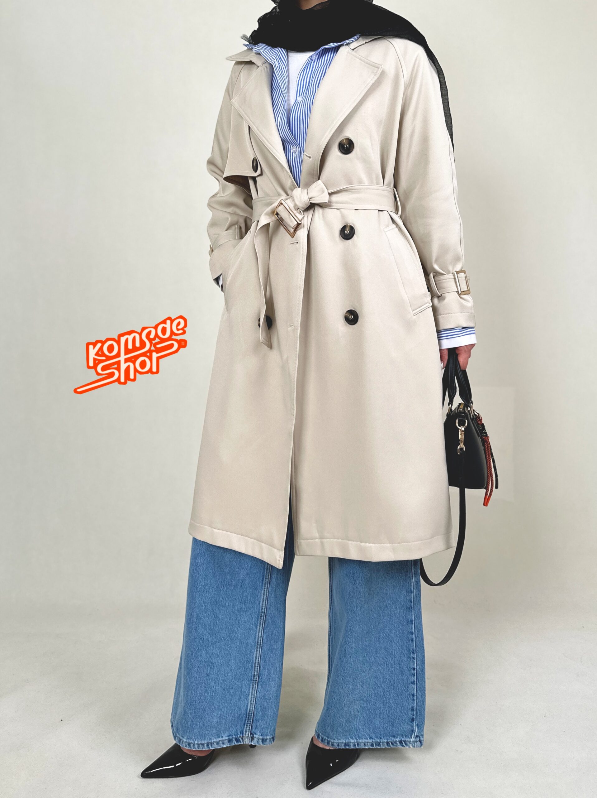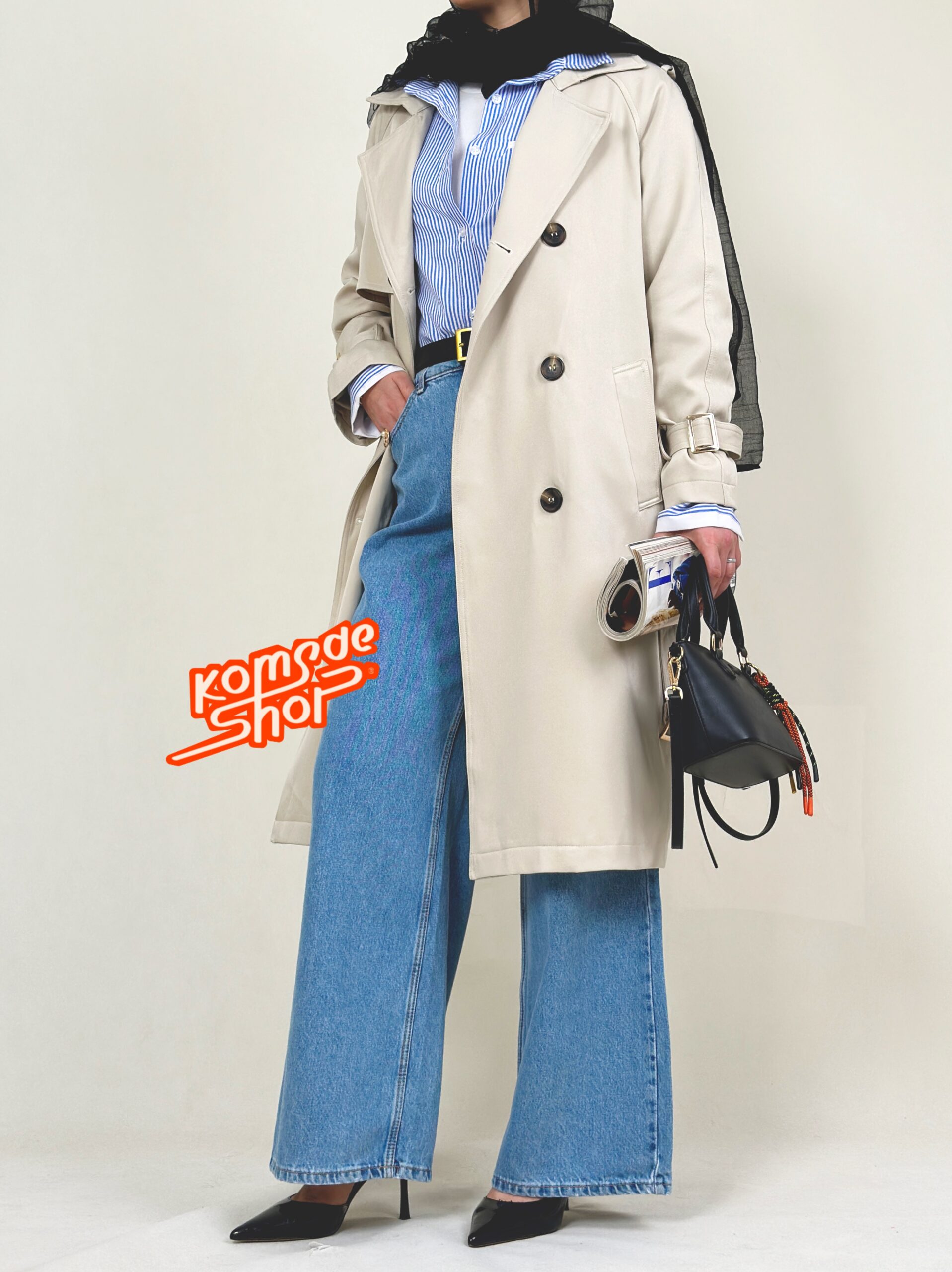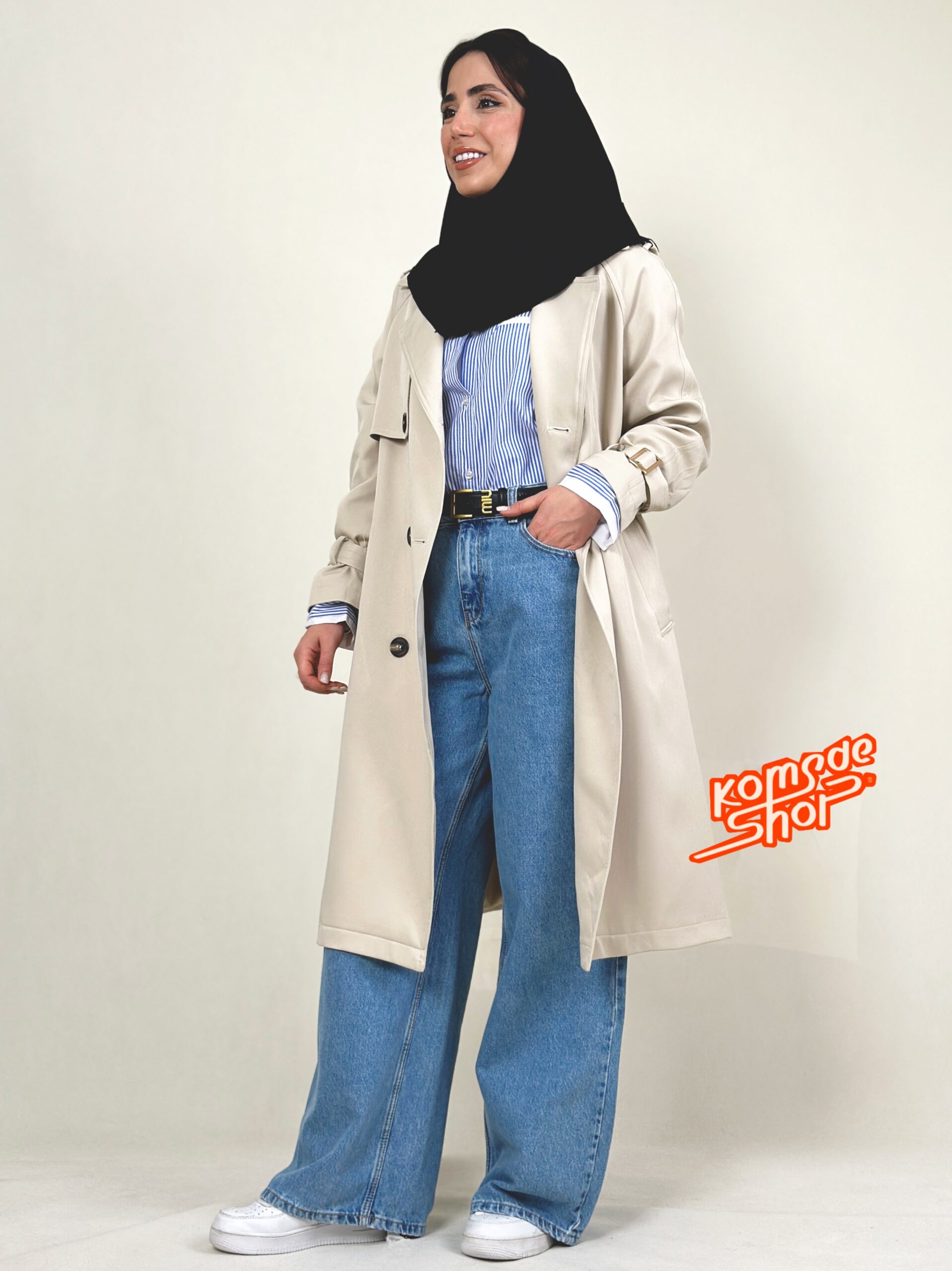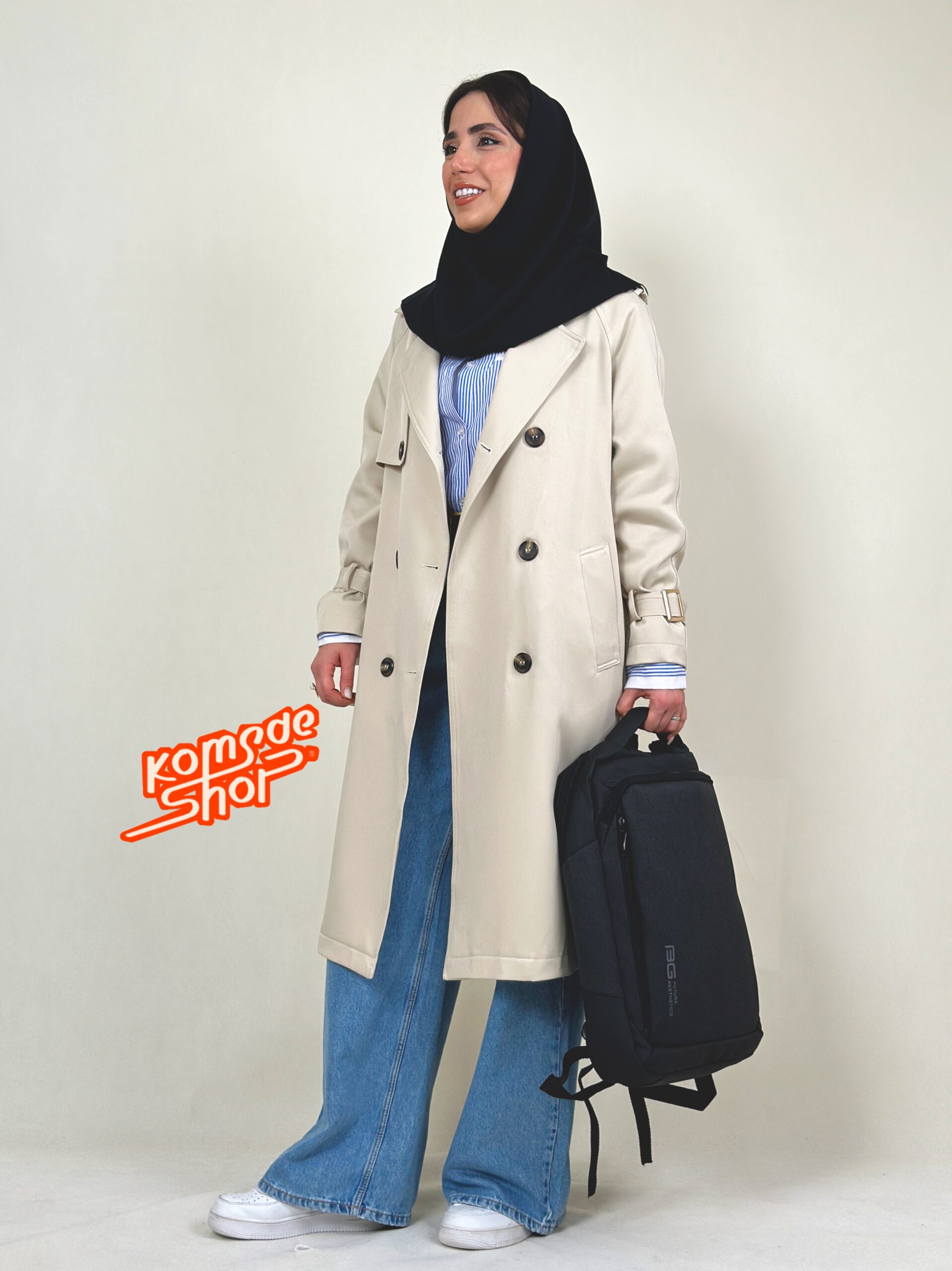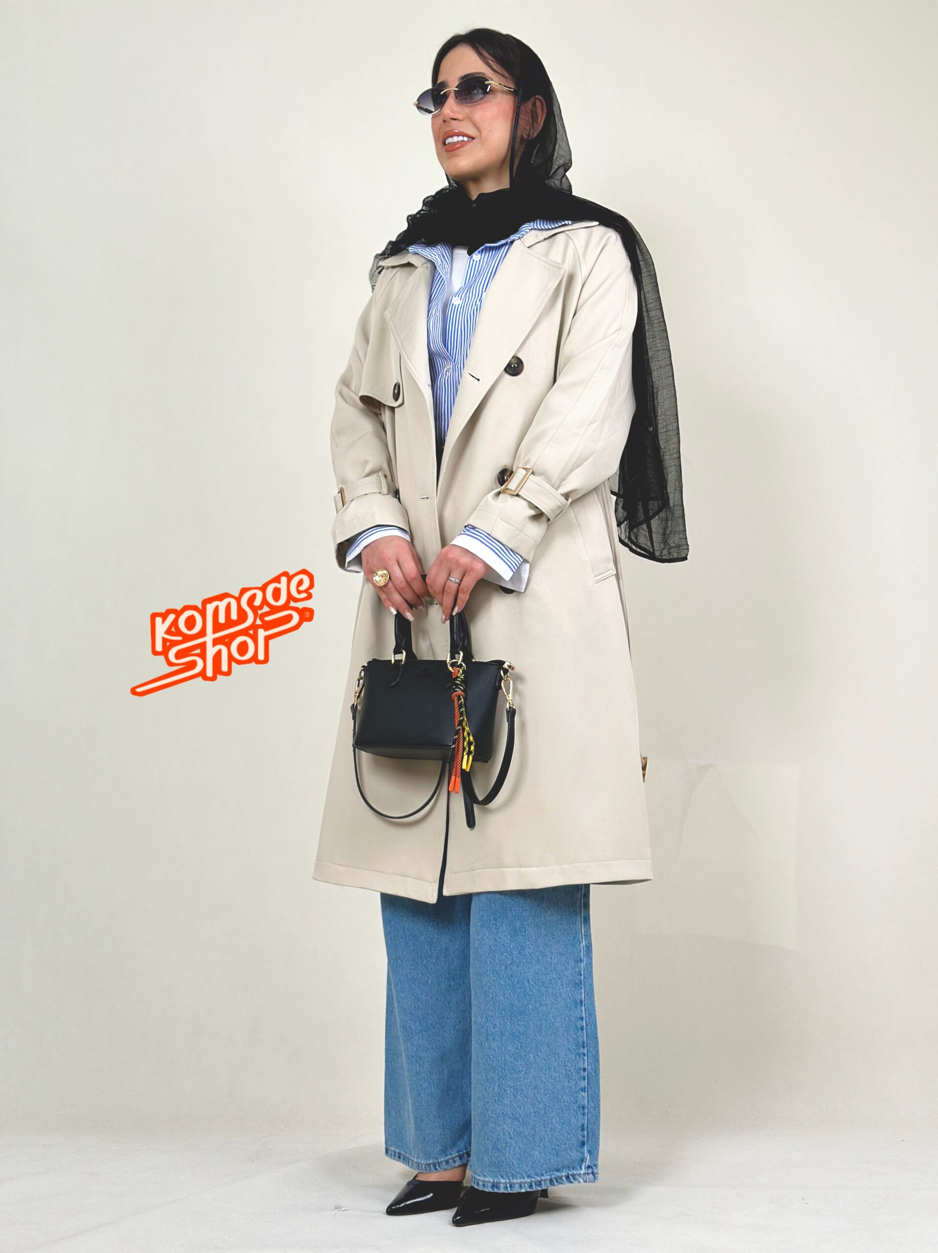 ترنچ کت مسکو با برشهای تمیز و دقیق، یقه کلاسیک و دکمههای ظریف، استایلی مینیمال و در عین حال قدرتمند ایجاد میکند مناسب برای بانوانی که میخواهند در روزهای بارانی و سرد، استایلشان همچنان جذاب و منسجم باقی بماند.