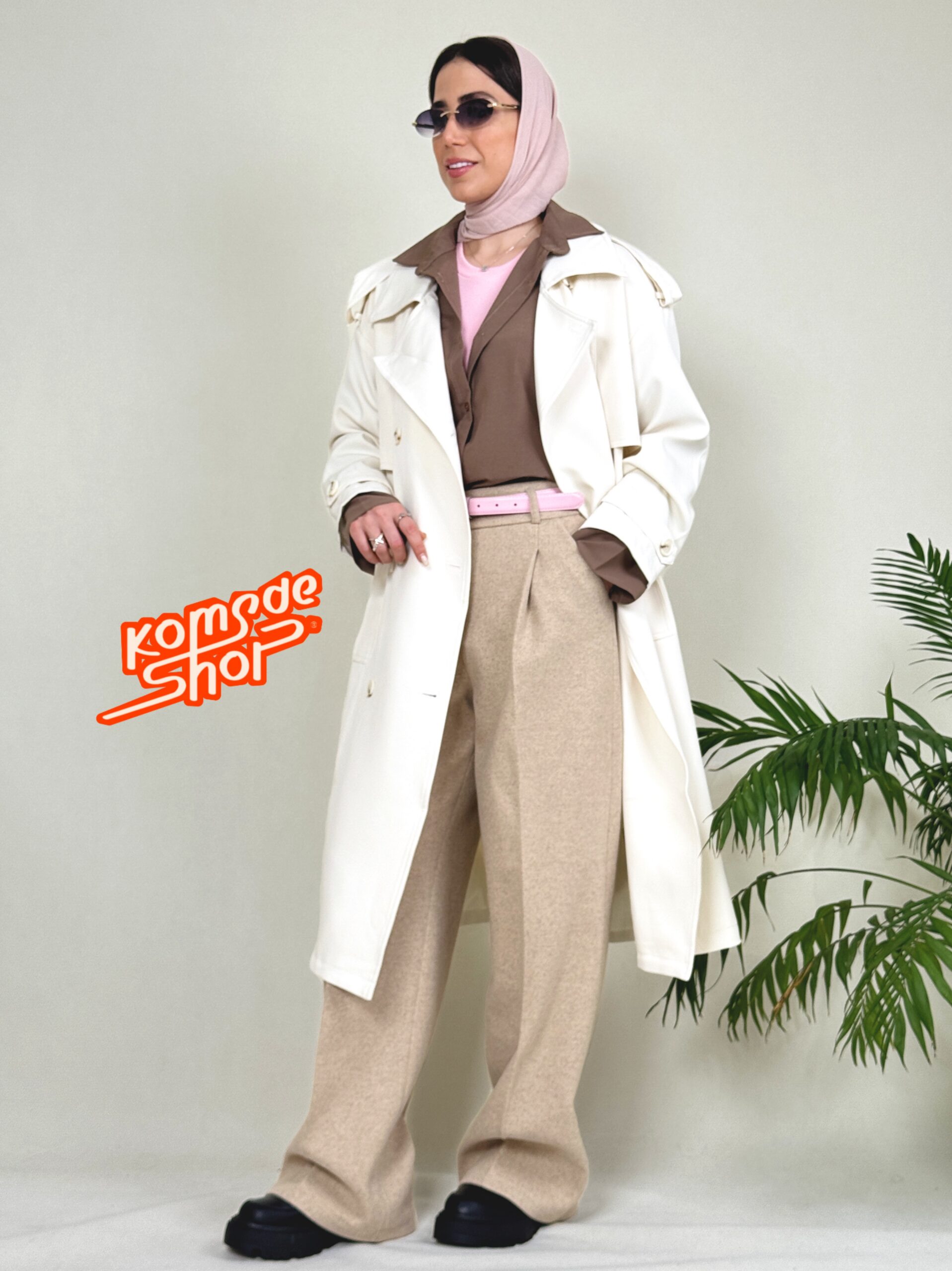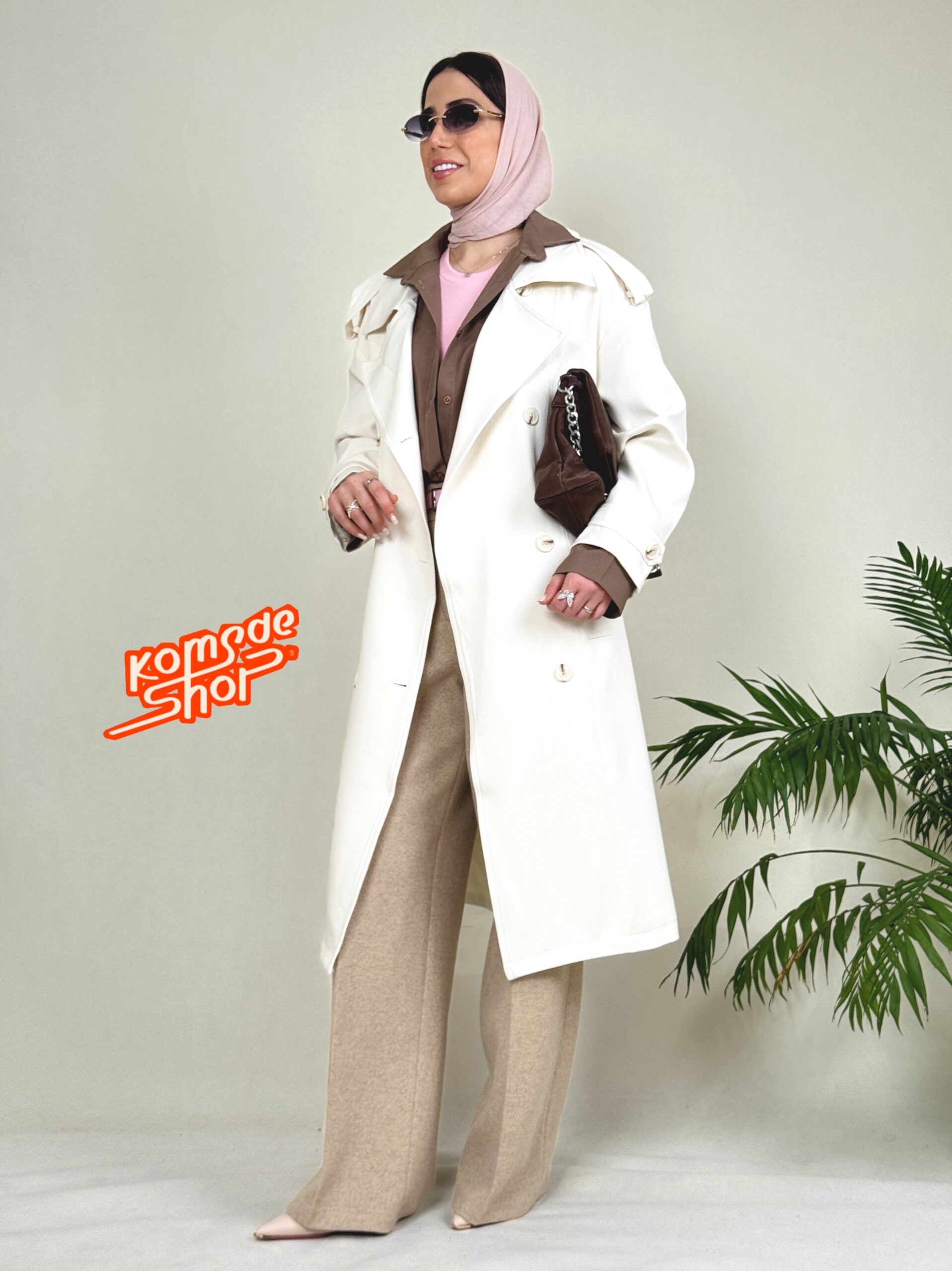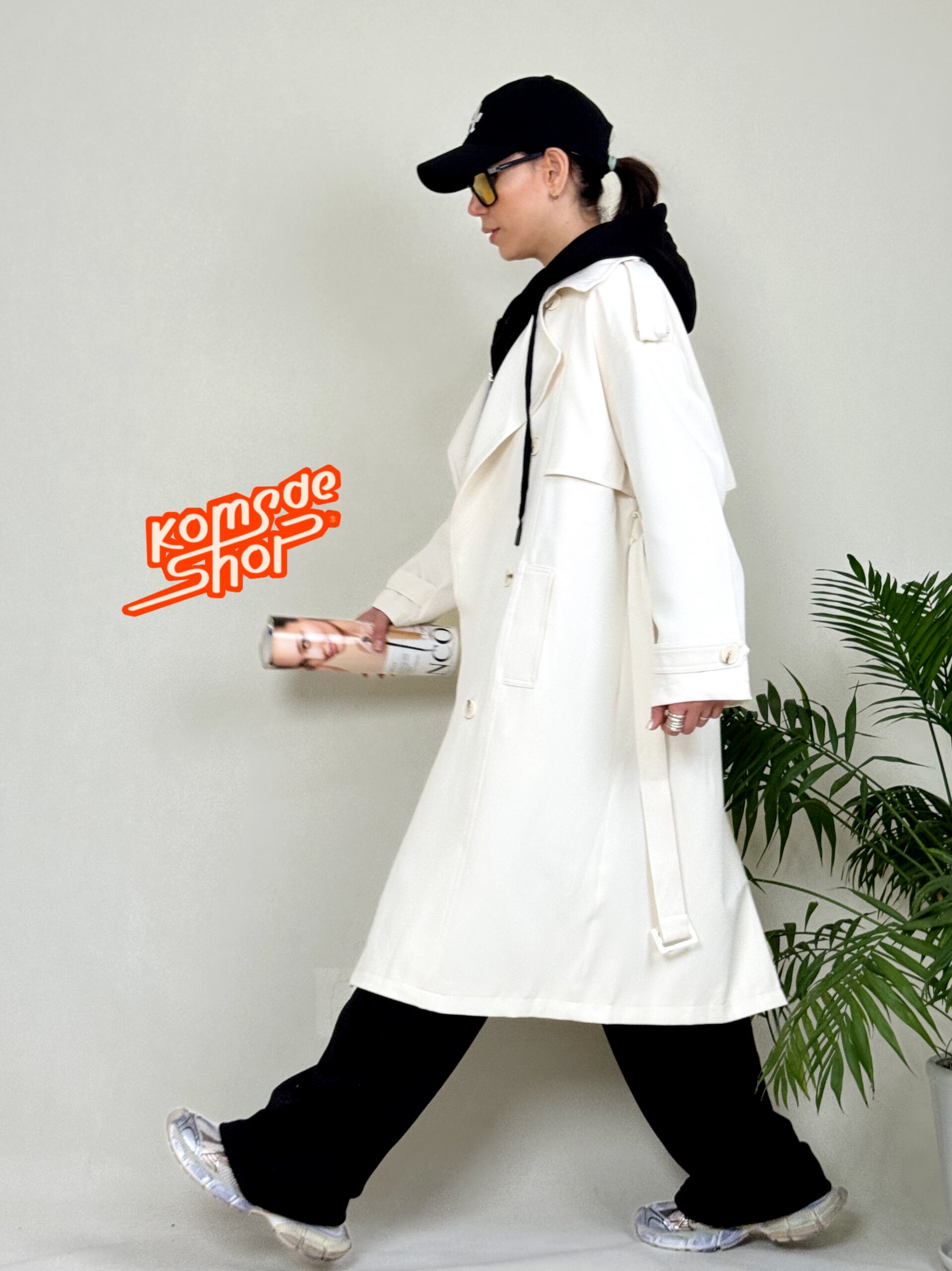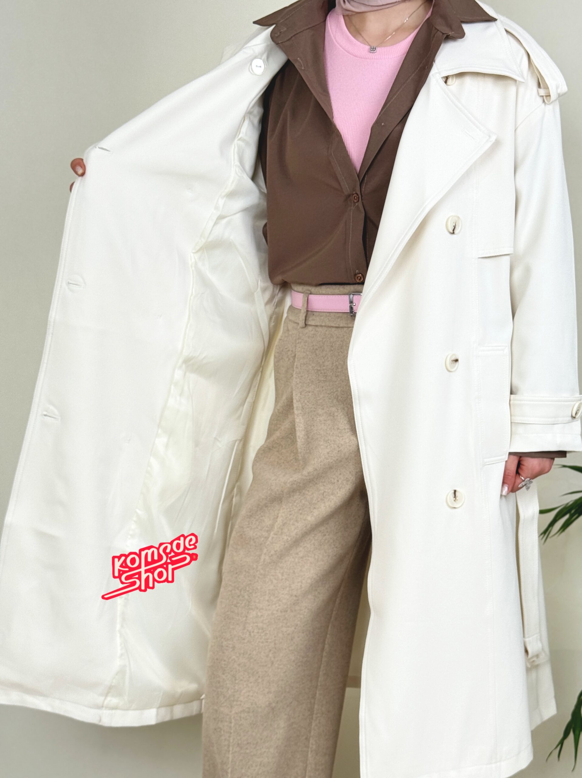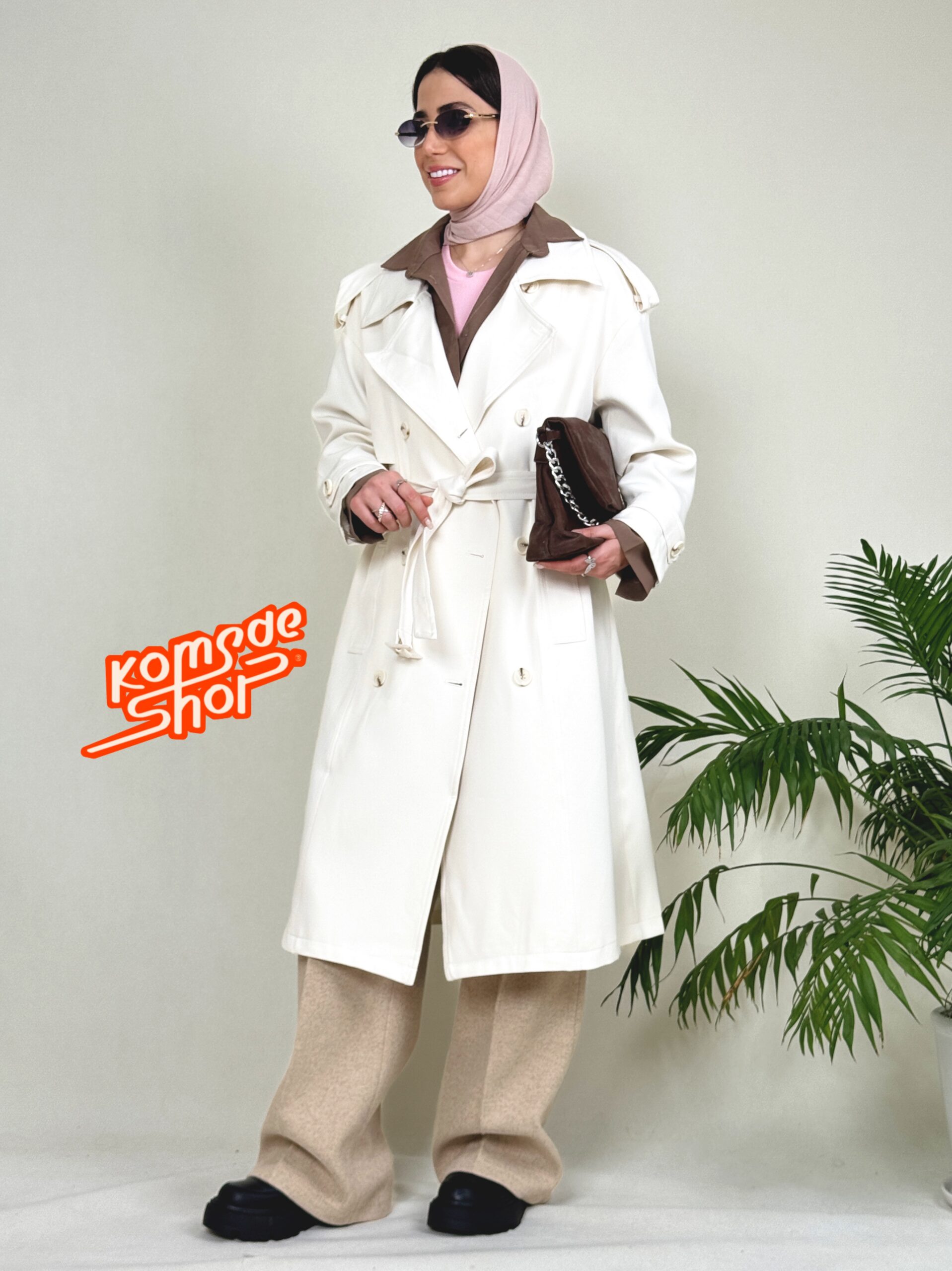 ترنچ کت بلند کلاسیک با پارچه نانو آب‌گریز و گرم بالا، آسترکشی کامل، طراحی مینیمال و فری‌سایز. مناسب استایل‌های پاییز و زمستون، خاص، لوکس و همیشه‌مد.
