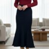 دامن بافت اسپنیش مشکی با فرم متفاوت و قد بلندتر، یه انتخاب شیک برای استایلهای پاییزی و زمستونیه که هم راحتی داره هم حسابی تو چشم میاد.