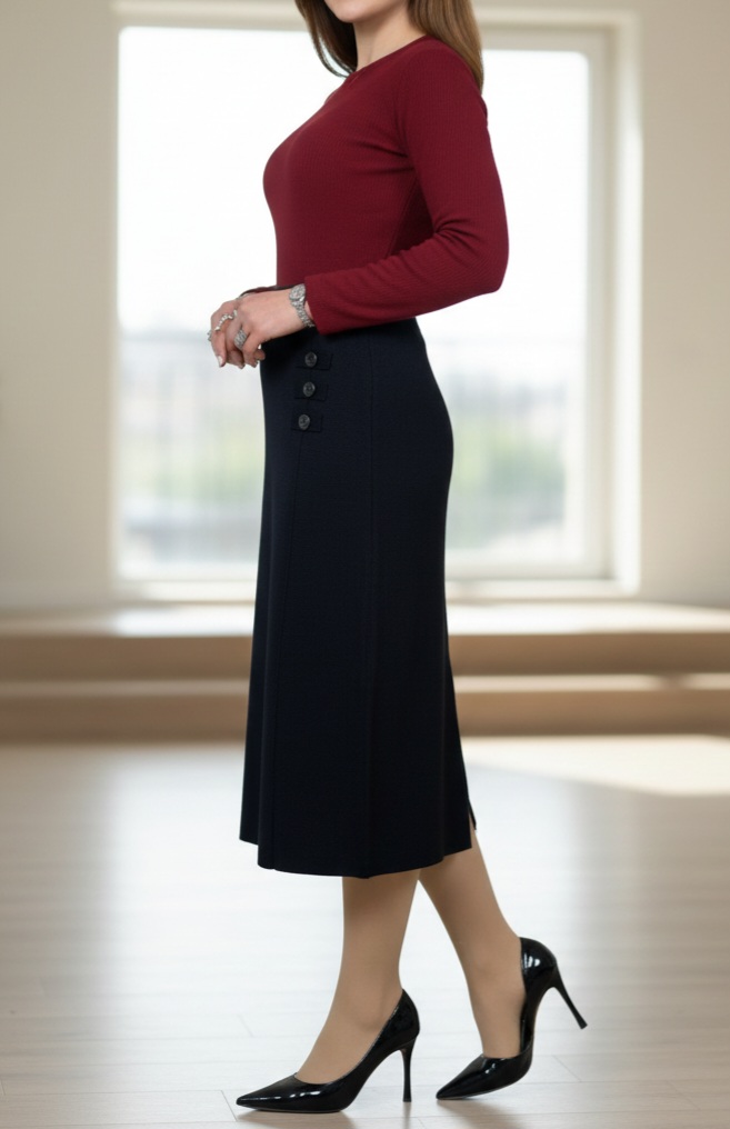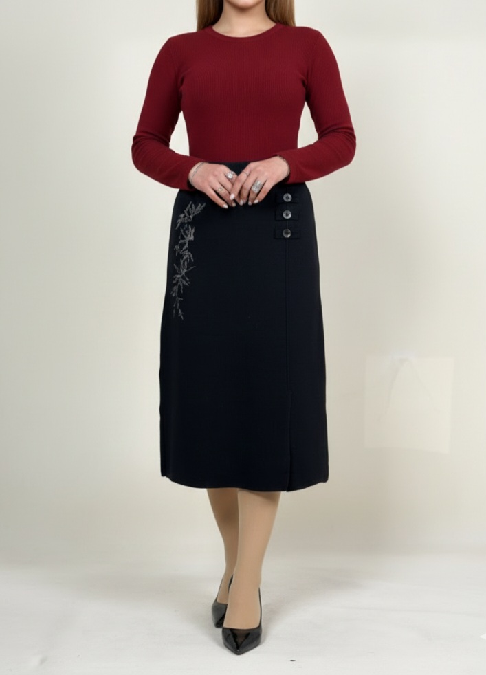 کمر کشی باعث میشه خیلی راحت روی بدن بشینه و دکمههای جلو، ظاهر دامن رو خاصتر و جذابتر کرده.