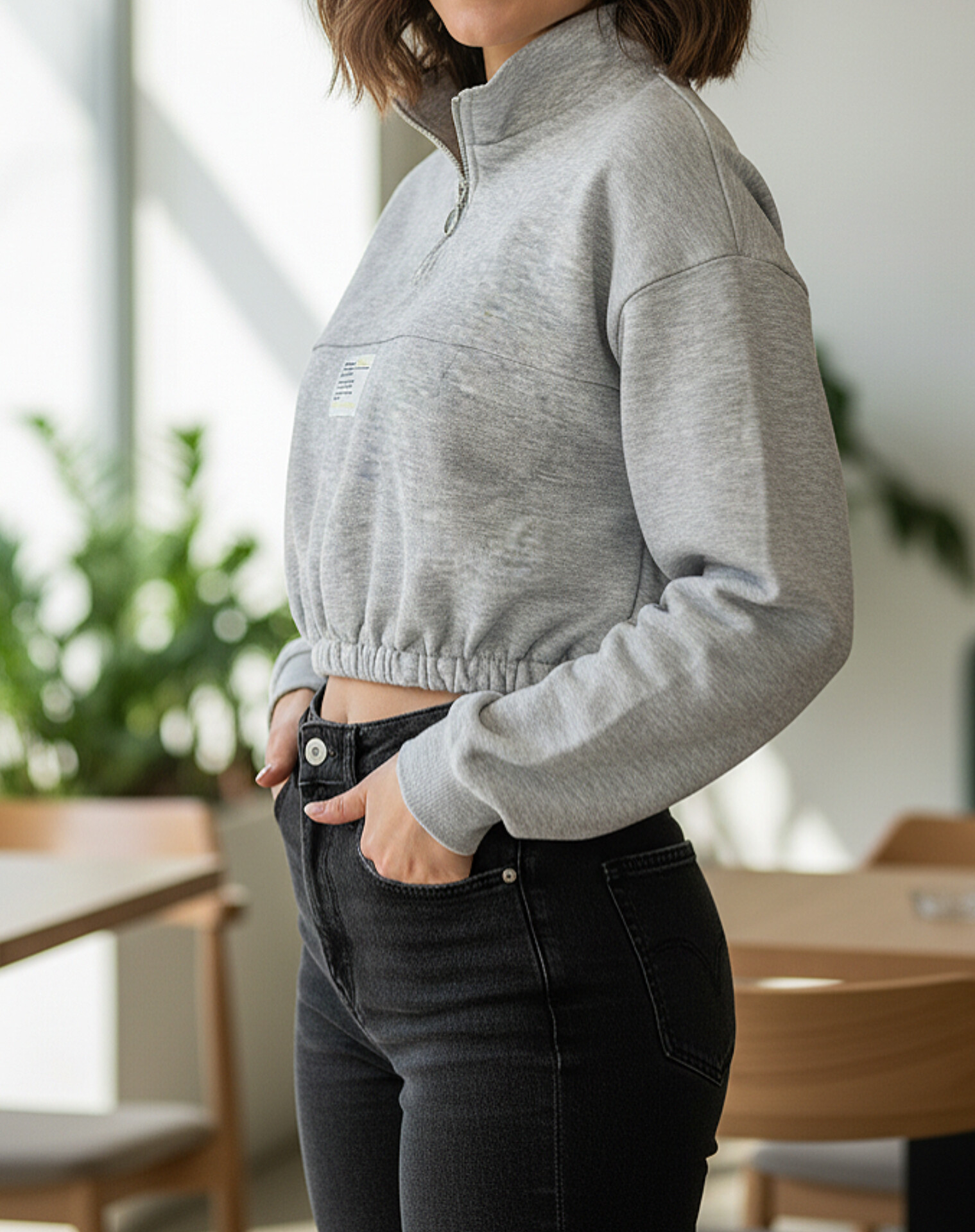 دورس کراپ برشکا ورس با پارچه‌ی پنبه‌ای سبک و بدون کرک، مناسب استایل روزمره. طراحی کوتاه و اسپرت، در دو سایز S و M.