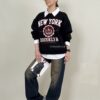دورس یقهدار نیویورک با پارچه دورس سهنخ ۱۰۰٪ پنبه، بدون پرزدهی، طراحی خاص با یقه و پایین سفید چسبیده، فریسایز و مناسب استایل روزمره.
