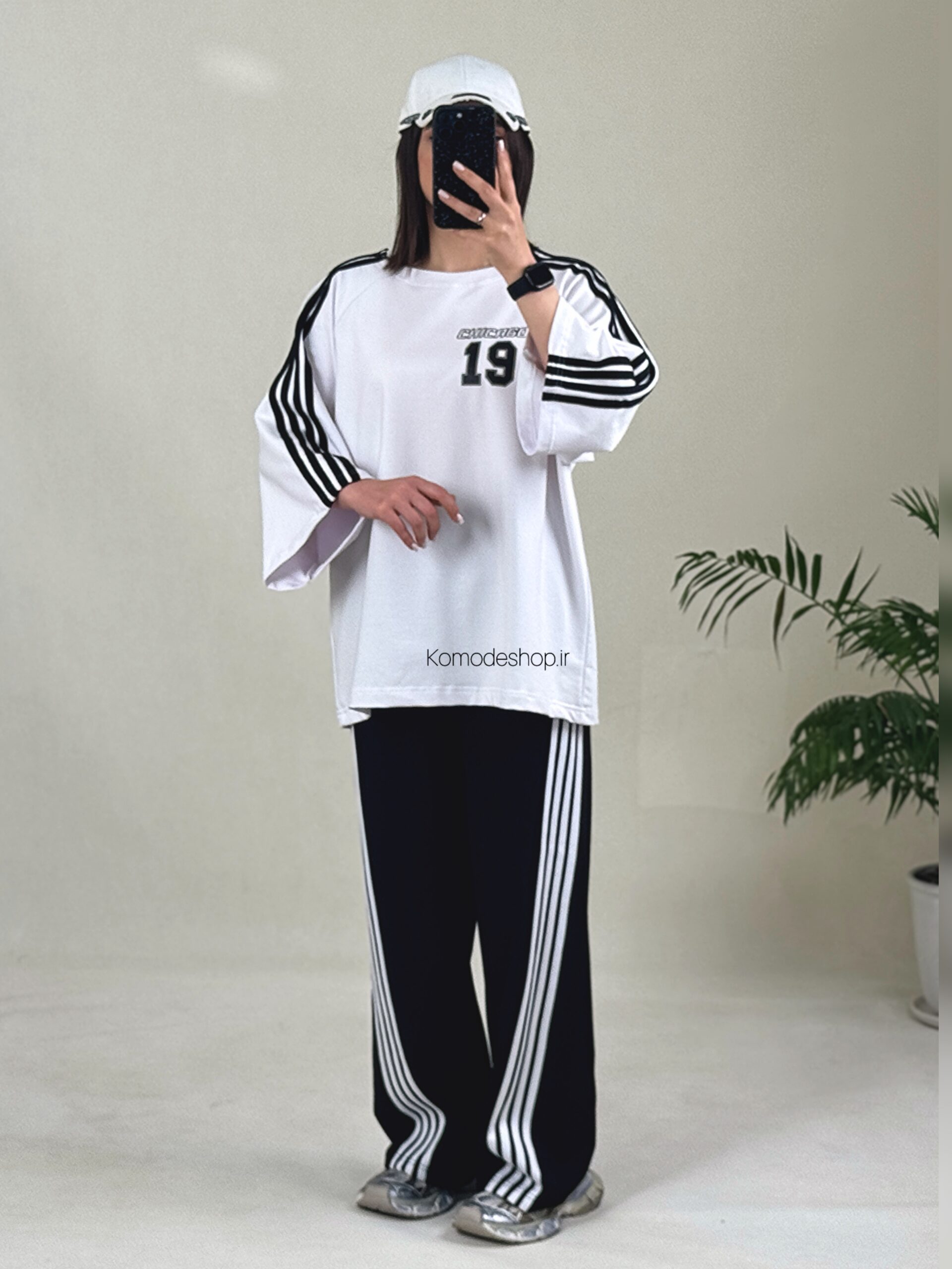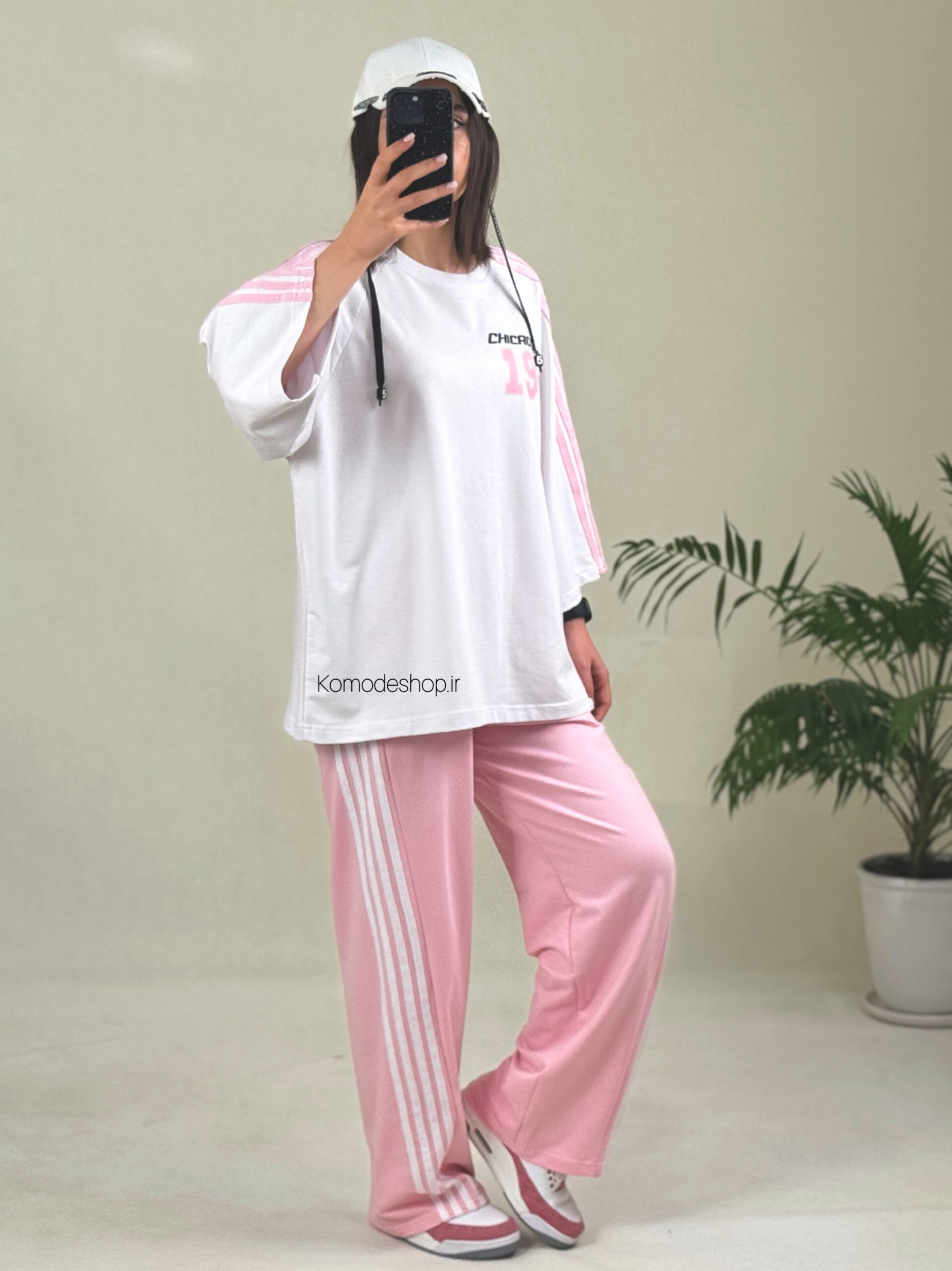 تیشرتش با قد ۷۰ سانت و فرم آزاد، راحت روی تن میشینه و شلوار هم با قد ۱۰۸ سانت و کمر کشی، خیلی راحت و فیت روی بدن قرار میگیره