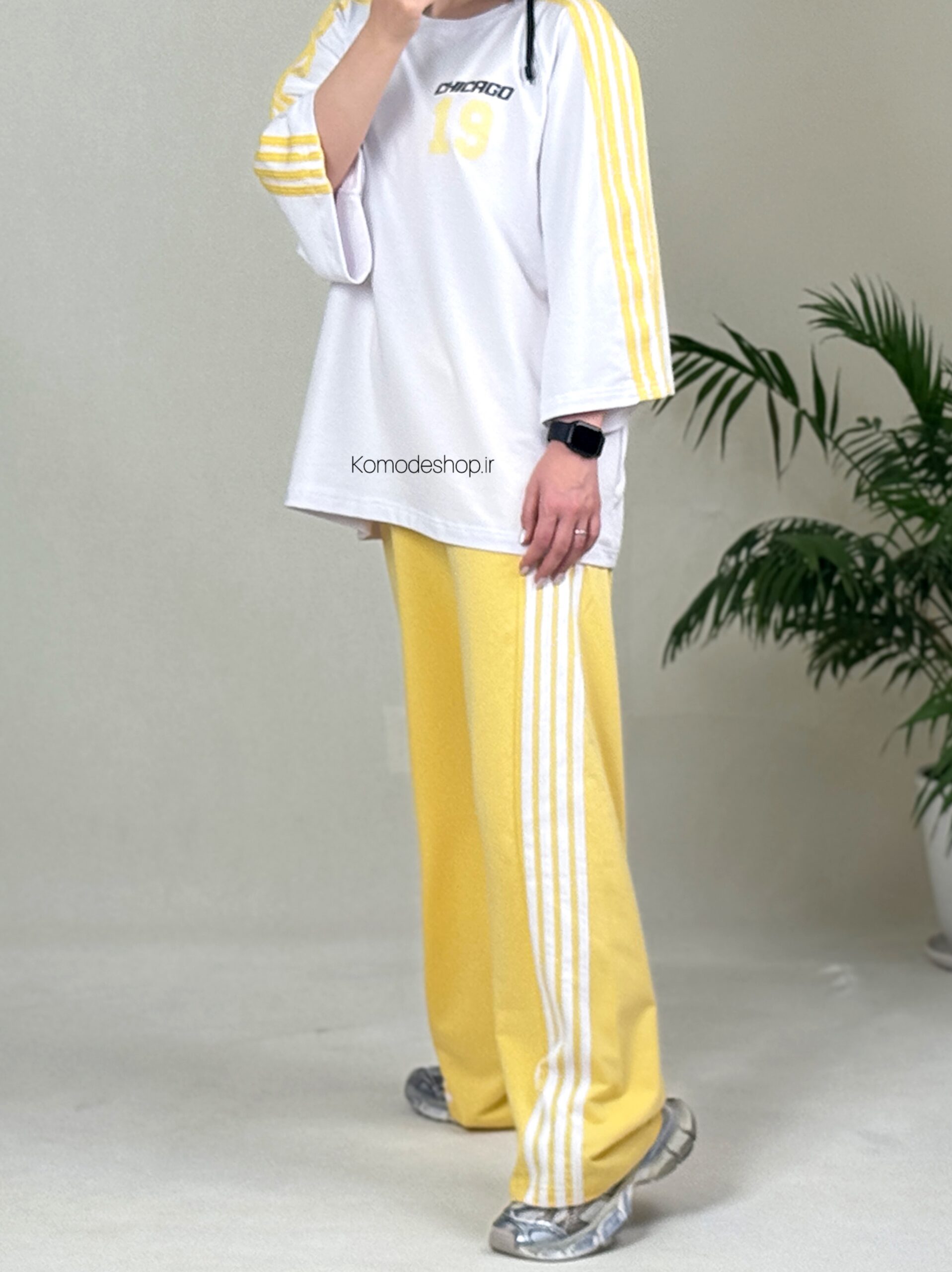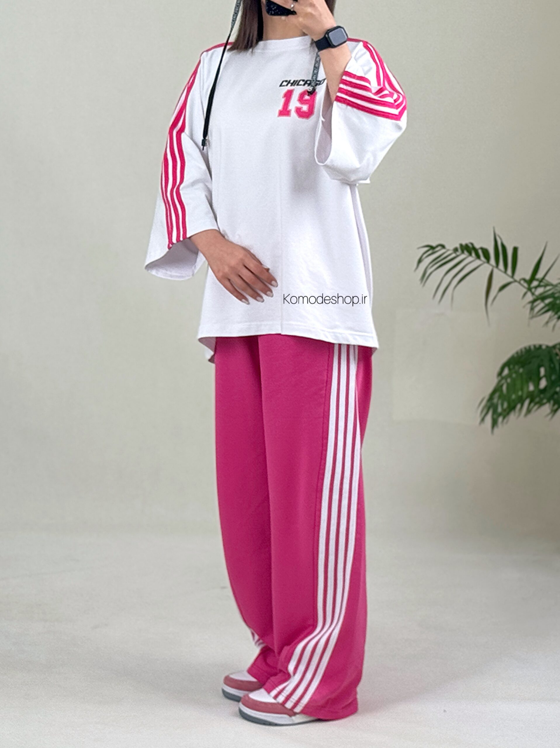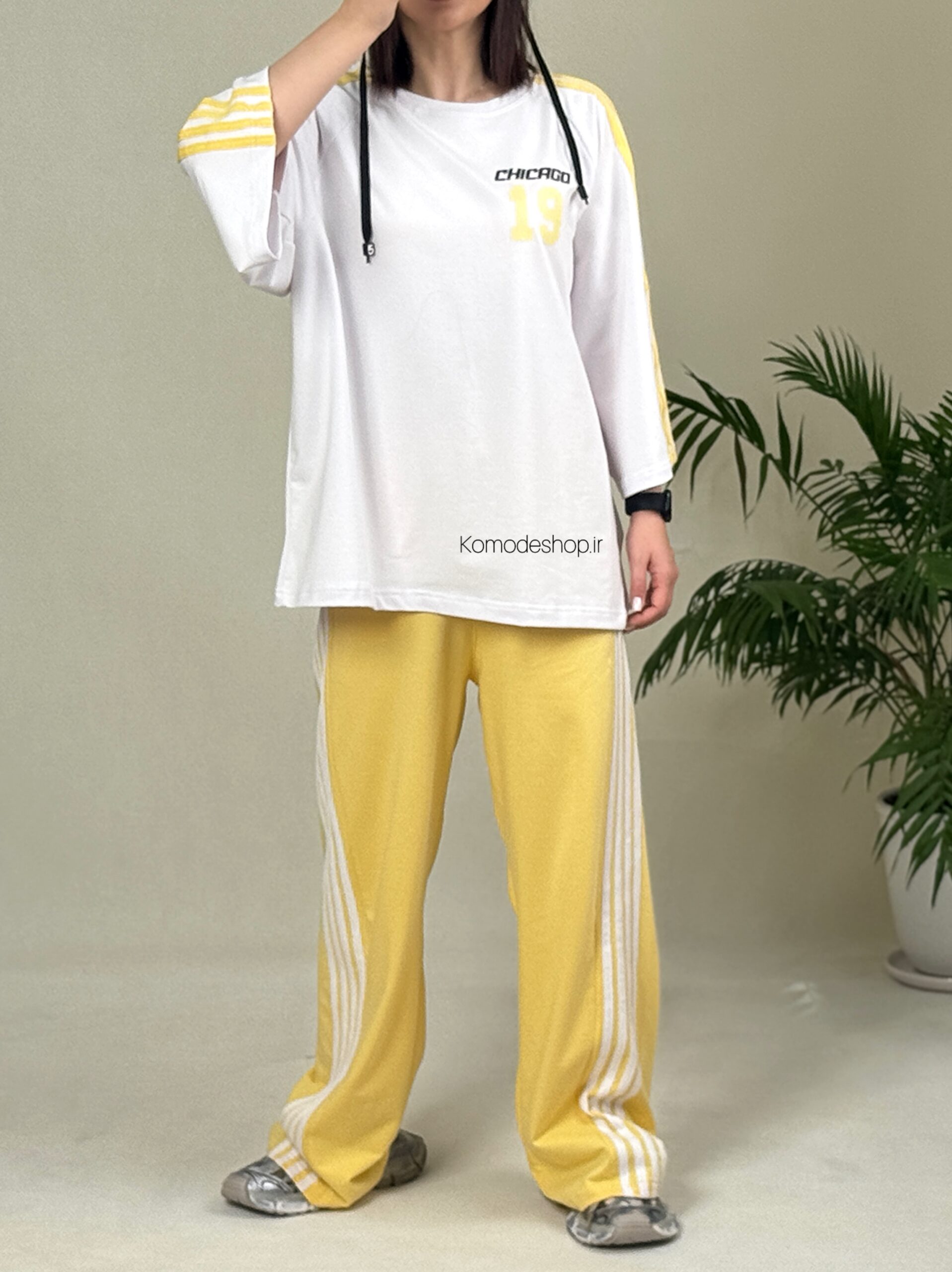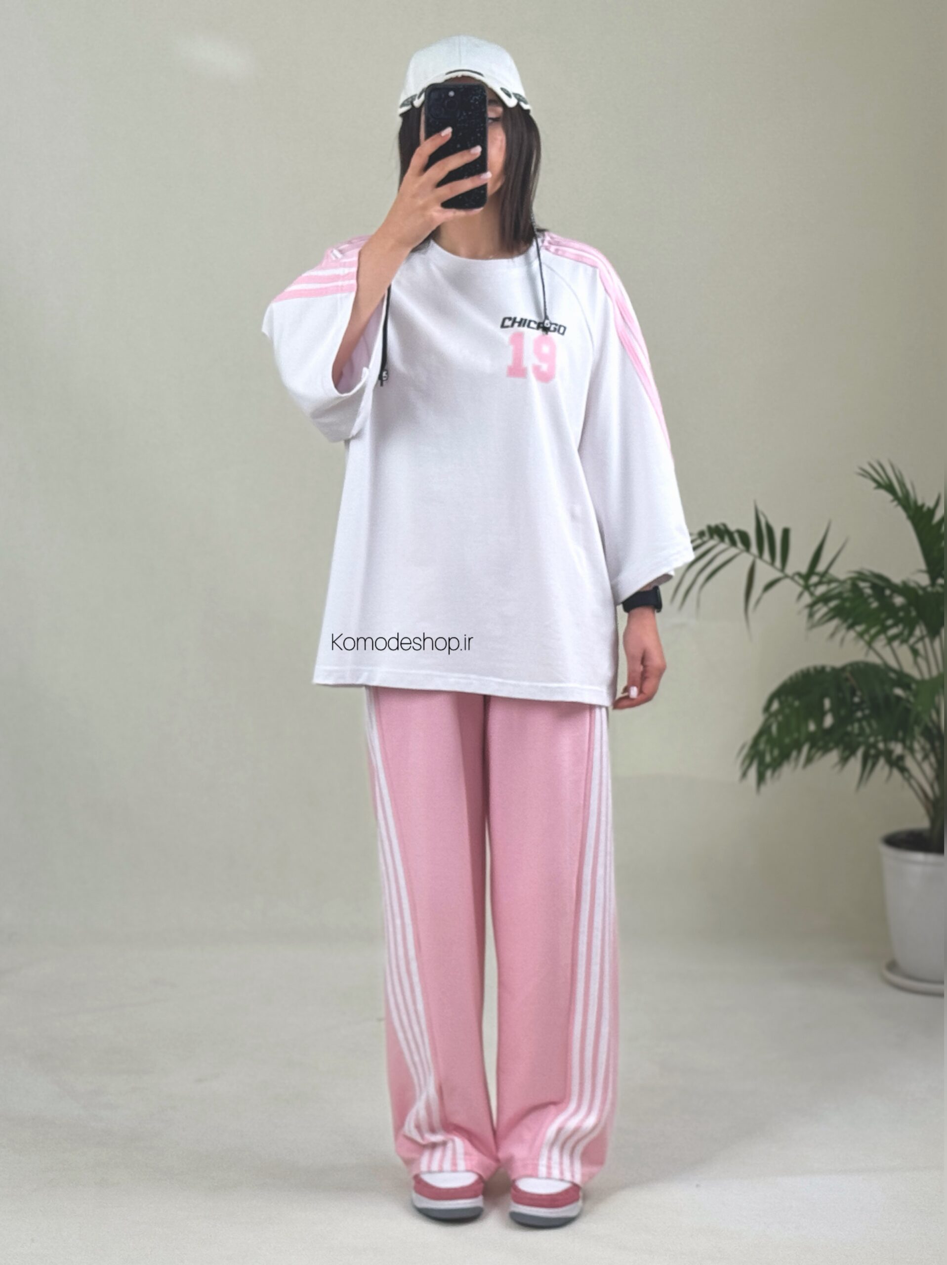 ست تیشرت و شلوار شیکاگو از پارچه گلکسی پنبهای دوخته شده؛ بدون هیچ پلیاستری و با کیفیت عالی و تضمینی. این ست اصلاً دوندون نمیشه و حسابی موندگاره مناسب سایزهای ۳۶ تا ۴۶ هست و برای استایلهای روزمره و تابستونی یه انتخاب فوقالعاده محسوب میشه.