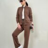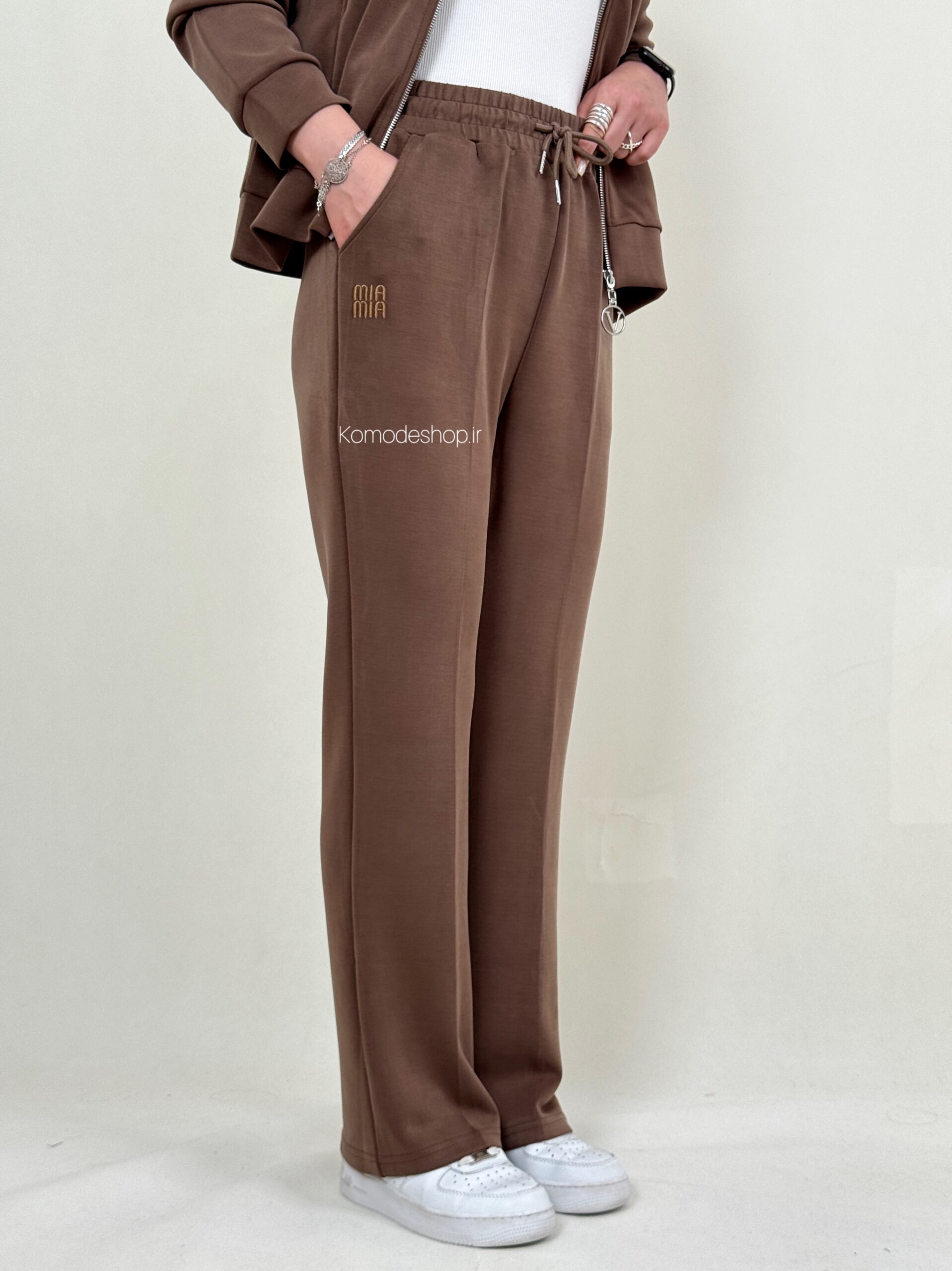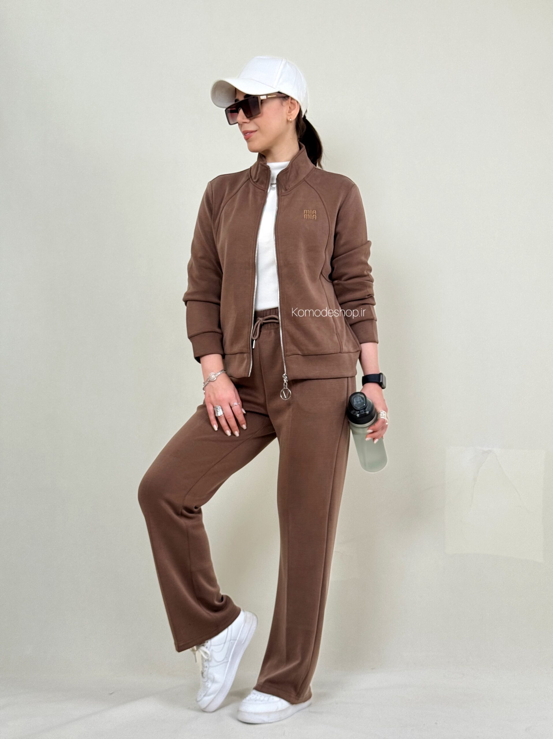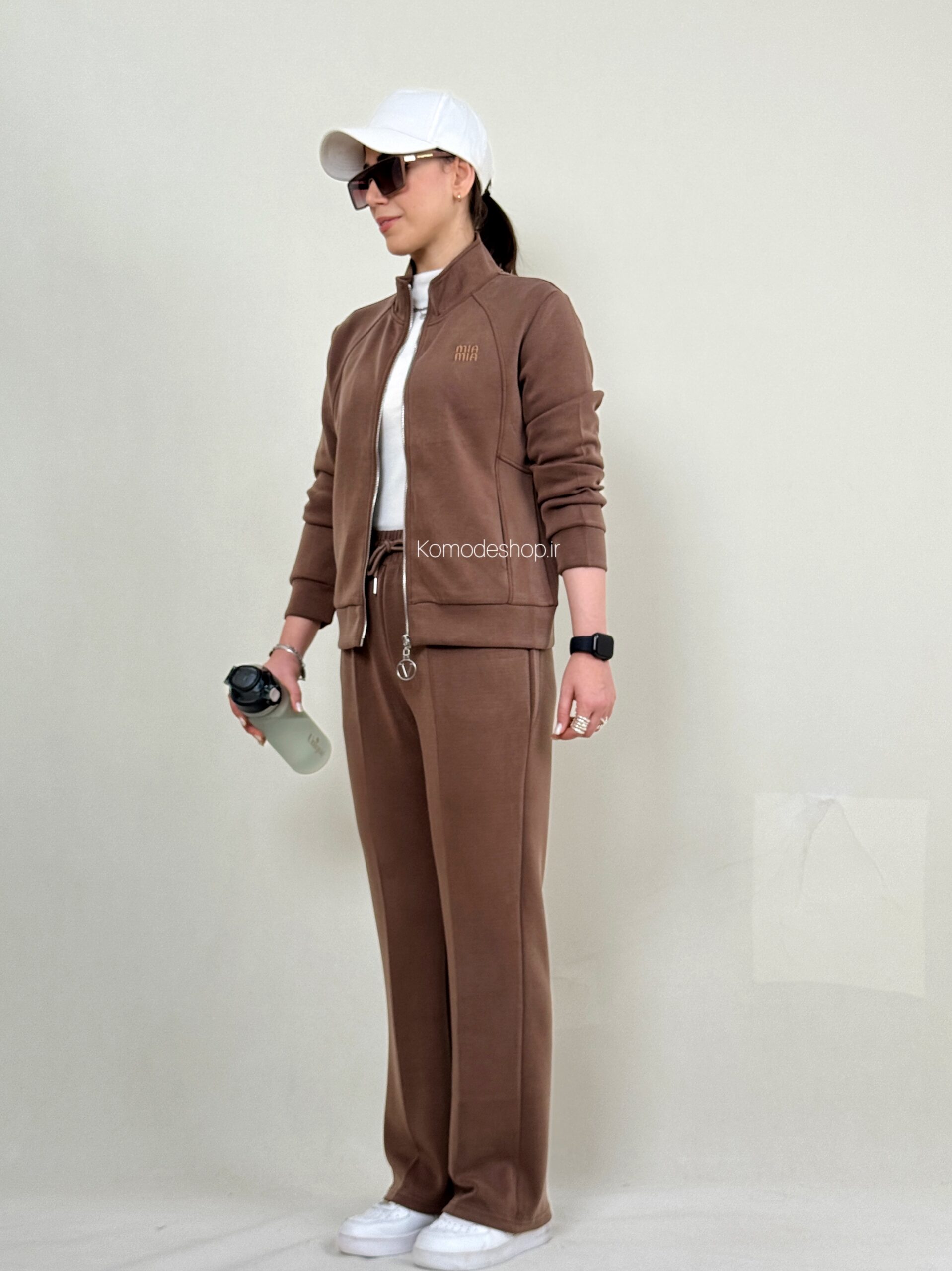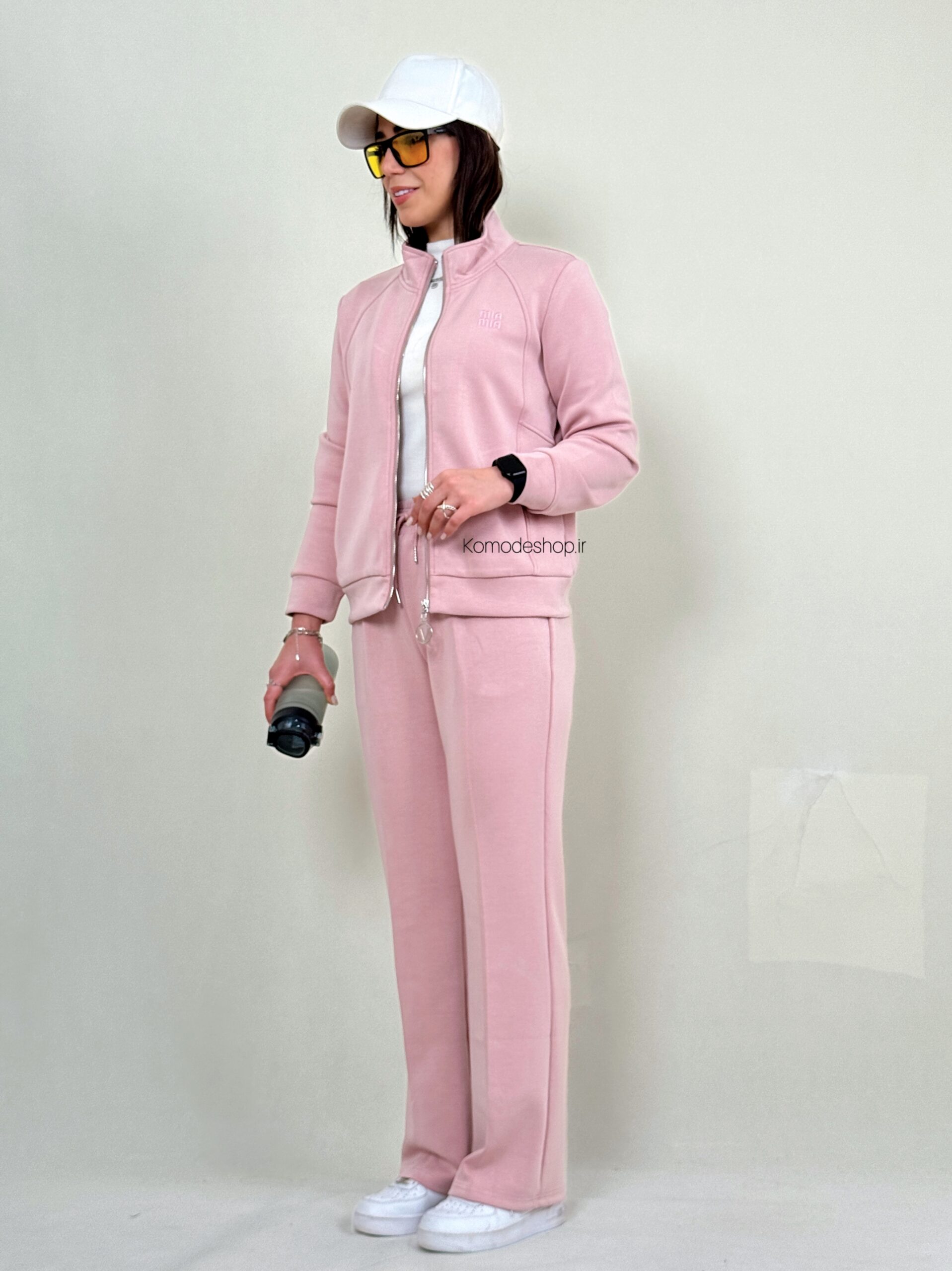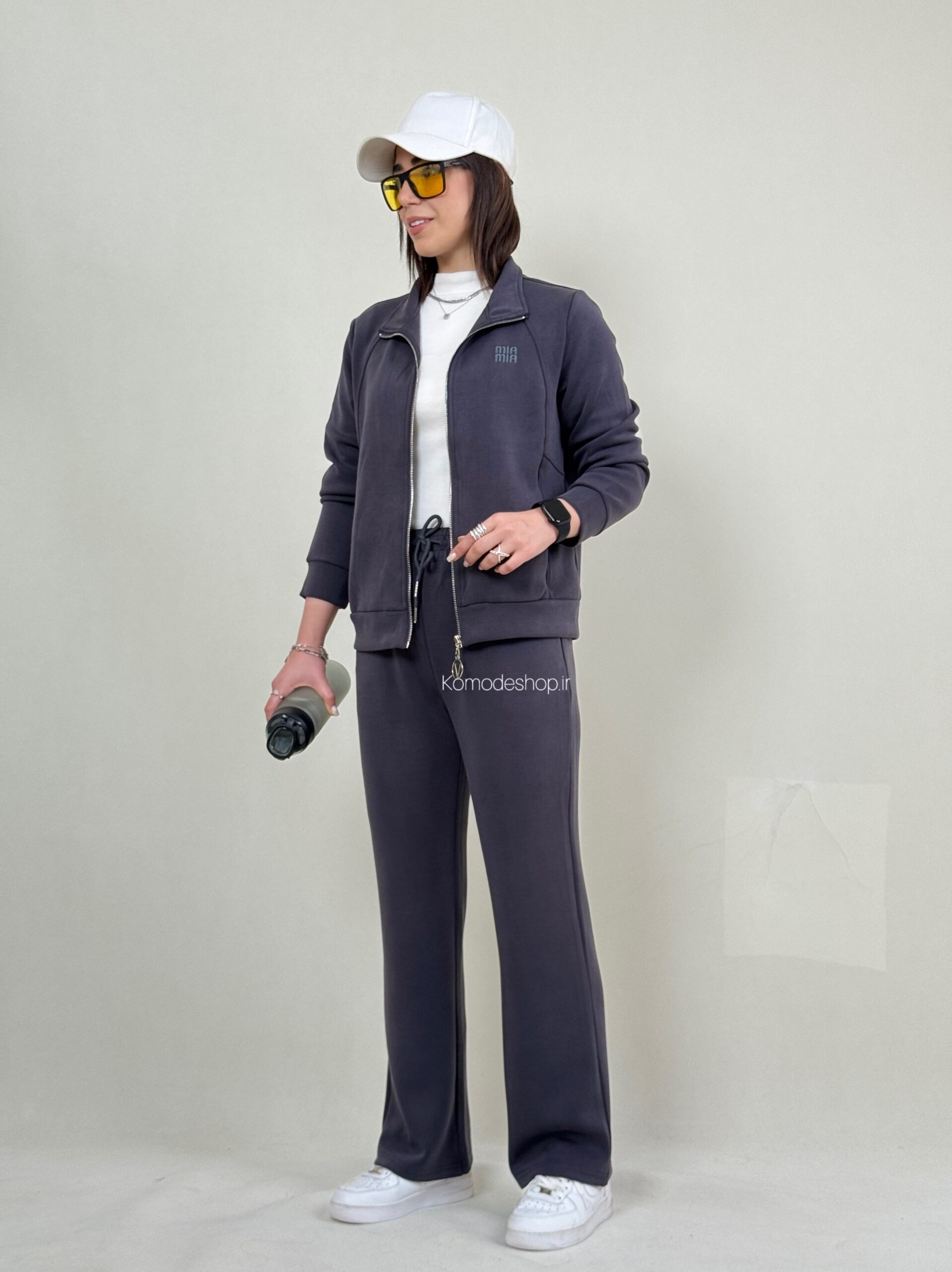 ست سویشرت و شلوار MIA با پارچه اویشو وارداتی و کیفیت مستر، کشسان، نرم و مناسب چهار فصل. موجود در رنگ‌های صورتی، طوسی تیره و قهوه‌ای.