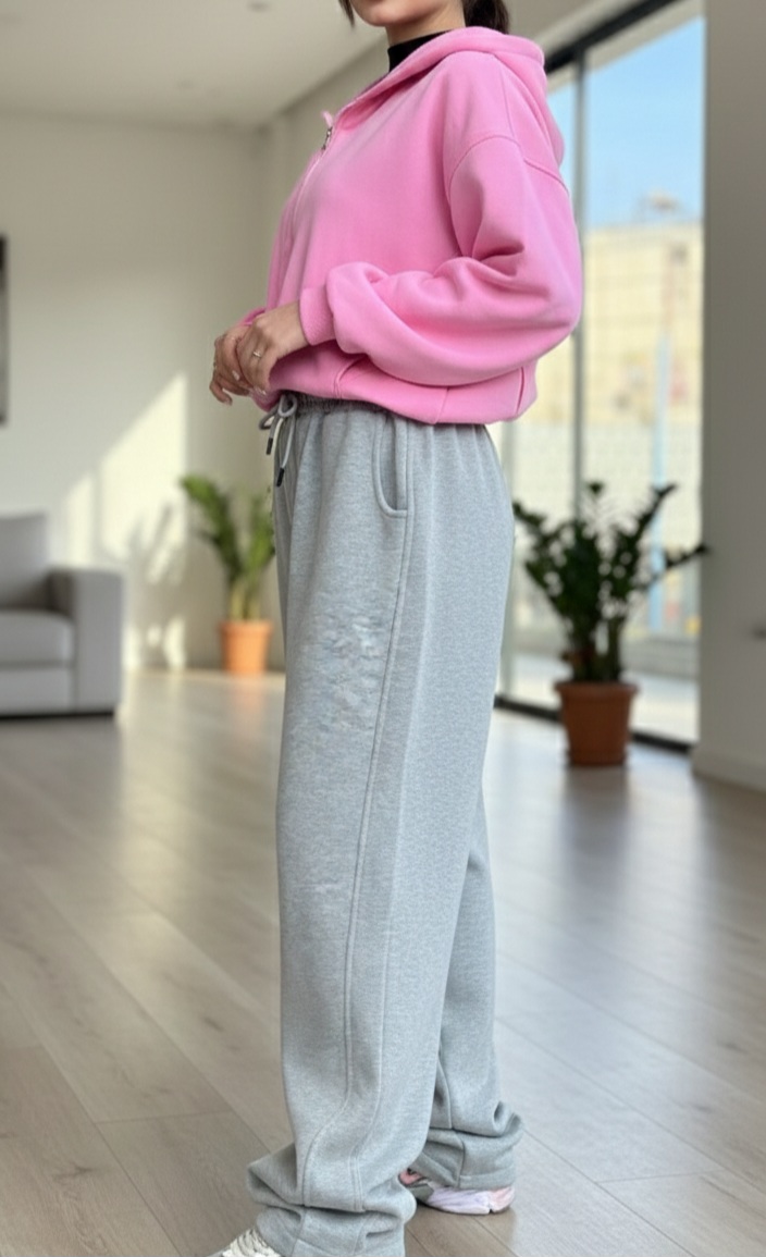 مدل باکسی و قد کوتاهترش باعث میشه استایل شلوراحت ولی کاملاً ترندی داشته باشی. پارچه دورس سه نخ حولهای ۱۰۰٪ پنبه، هم گرم و ضخیمه هم لطافتش حسابی به دل میشینه.