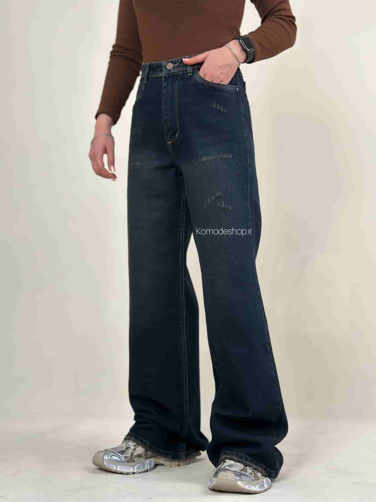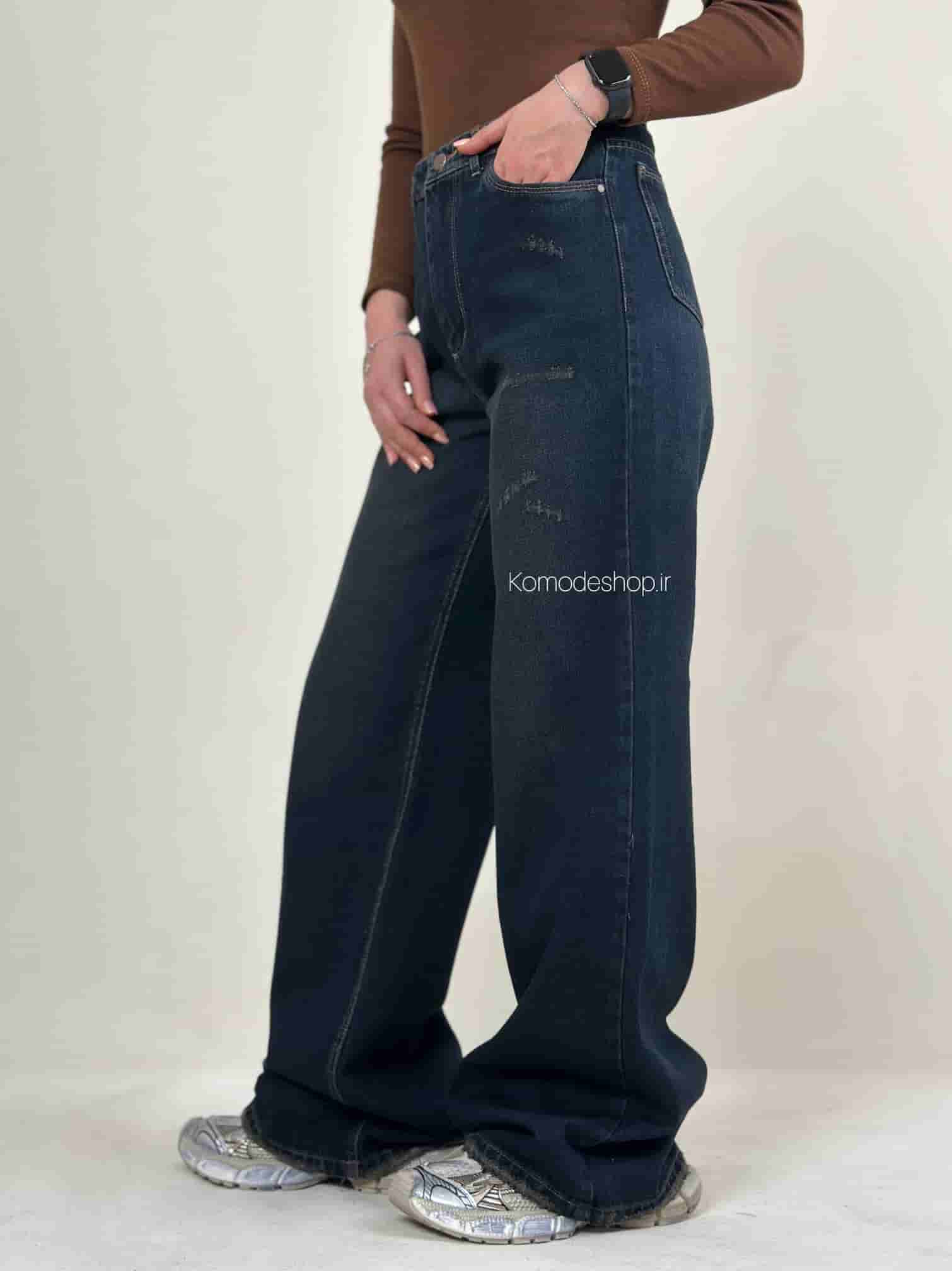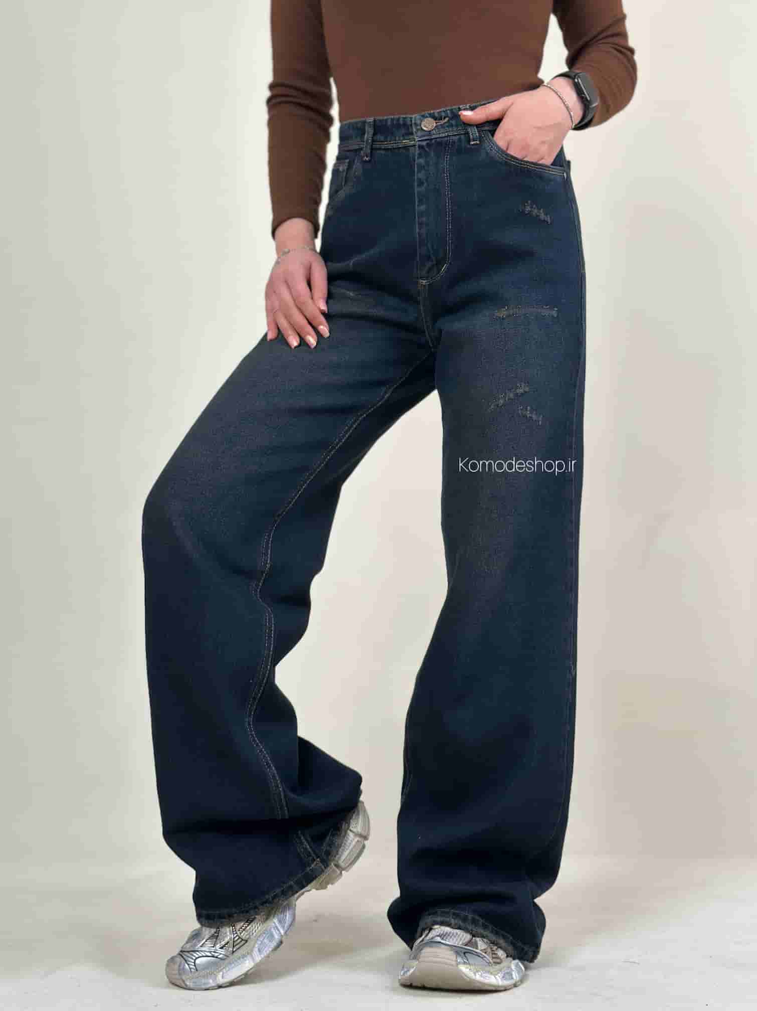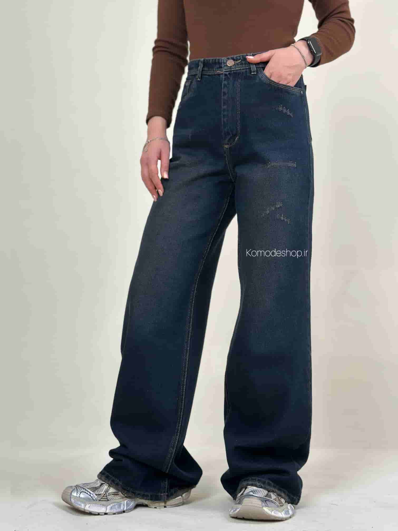 شلوار بگی زنانه خام شور کثیف با پارچه جین بدون کش. قد ۱۱۰ سانت، کیفیت عالی و تضمینی.