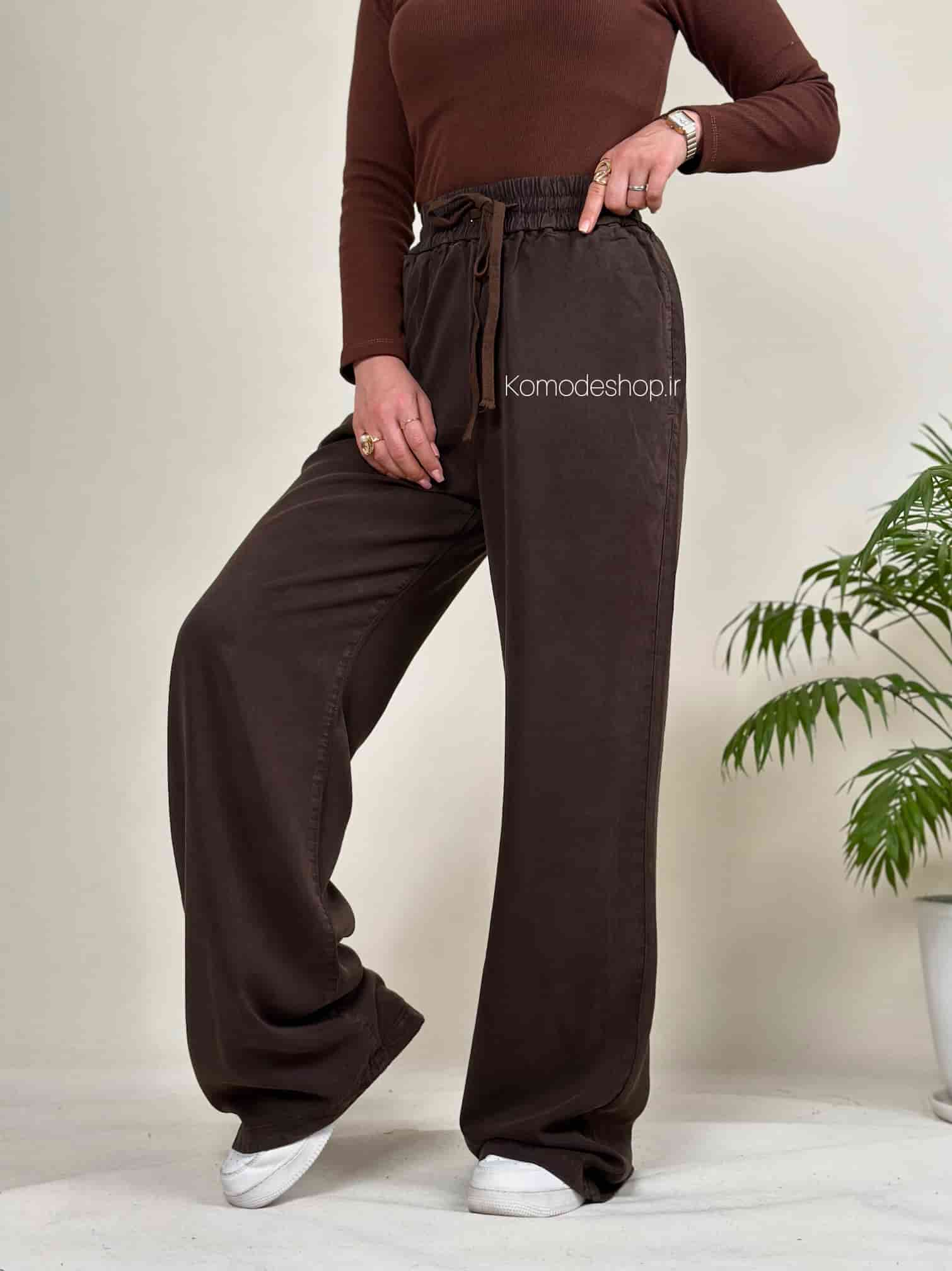 این شلوار سیلک کمر کش با پارچه سیلک و آنزیمشور، بدون آبرفت و بدون رنگرفت، یکی از ترندیترین مدلهای امسال است.