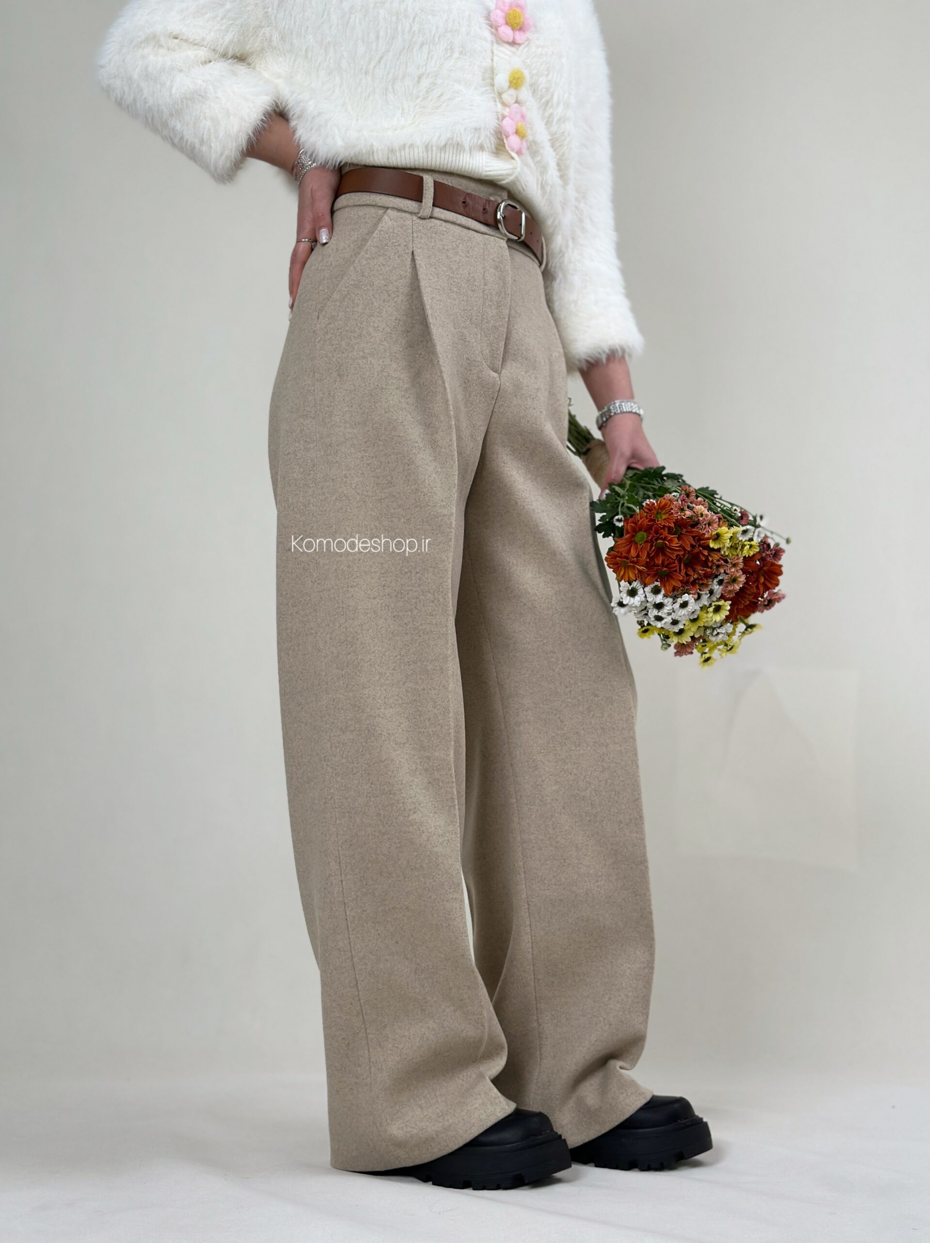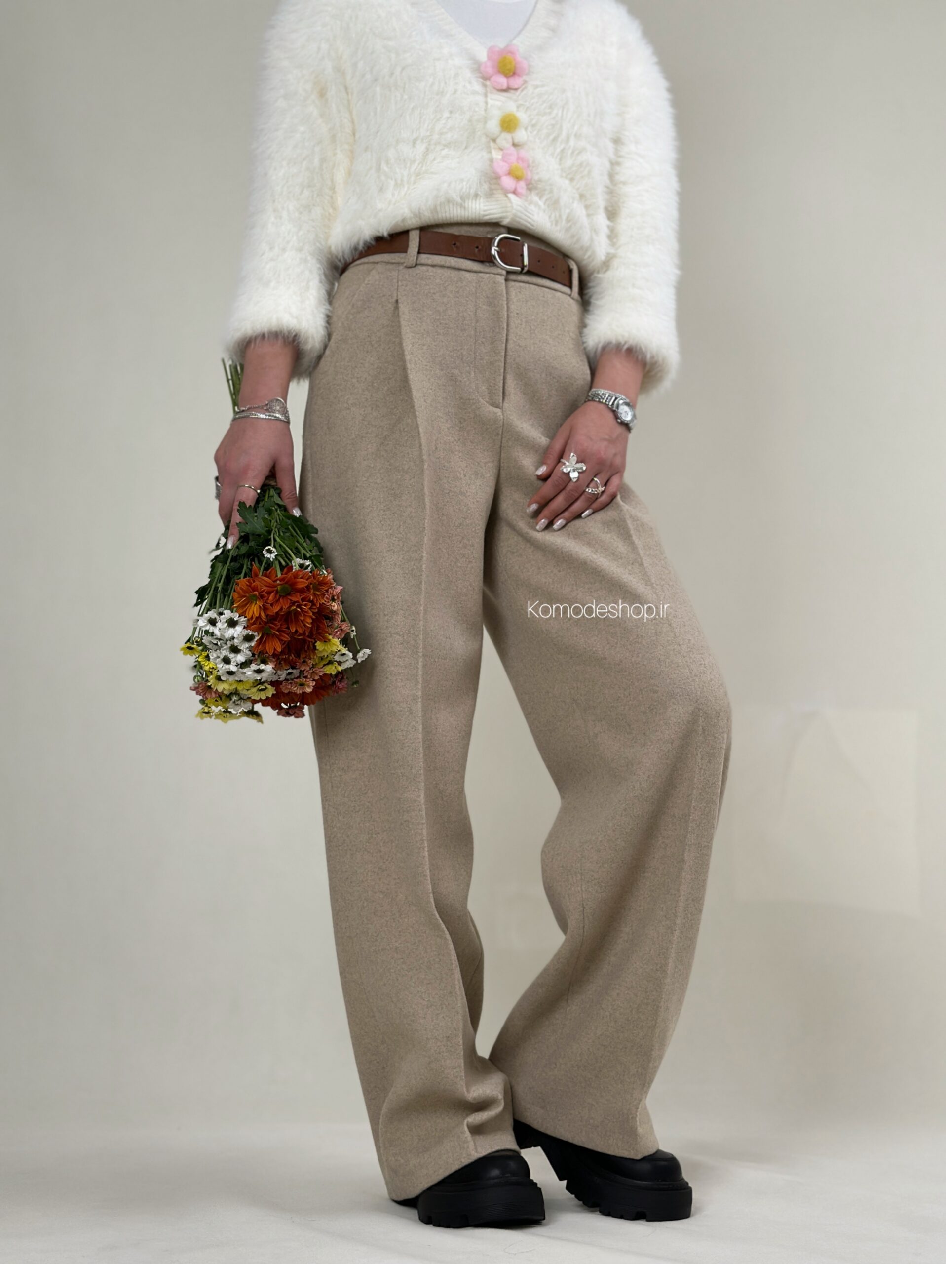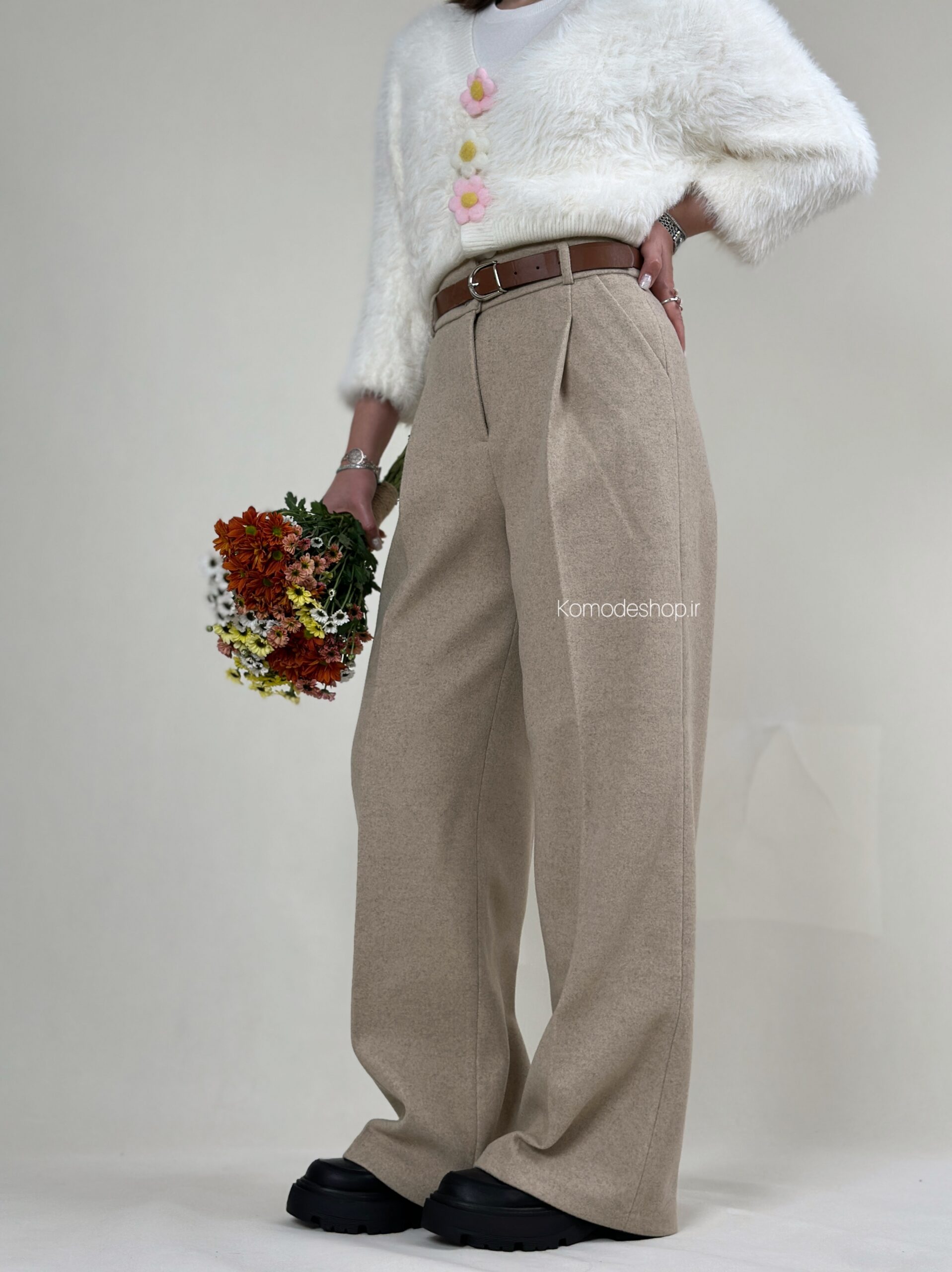 مدل پیلهدار این شلوار هم باعث میشه فرم قشنگتری روی تن بگیره و استایلت مرتب و شیکتر دیده بشه. پشت کمر کش نداره و با قد ۱۱۰ سانت میتونی راحت با کت، بارونی یا پلیورهای بافت ستش کنی.