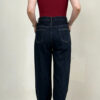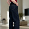 شلوار نیمبگ سرمهای خامشور با پارچه جین ترک، بدون کش، پشت کمر ساده و قد ۱۱۲ سانت. تنخور شیک و کیفیت تضمینی.