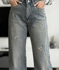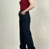 شلوار نیمبگ سرمهای خامشور با پارچه جین ترک، بدون کش، پشت کمر ساده و قد ۱۱۲ سانت. تنخور شیک و کیفیت تضمینی.