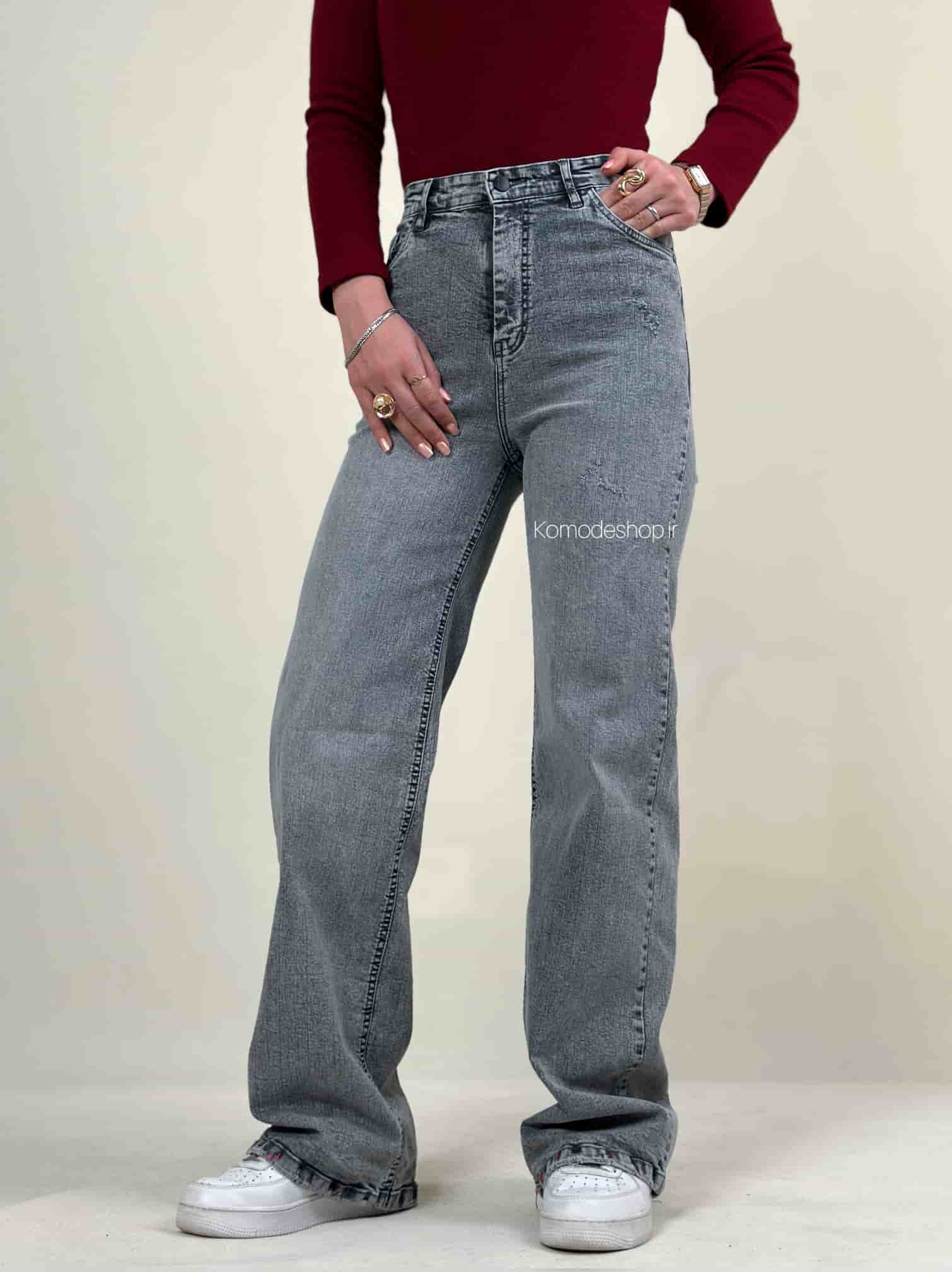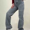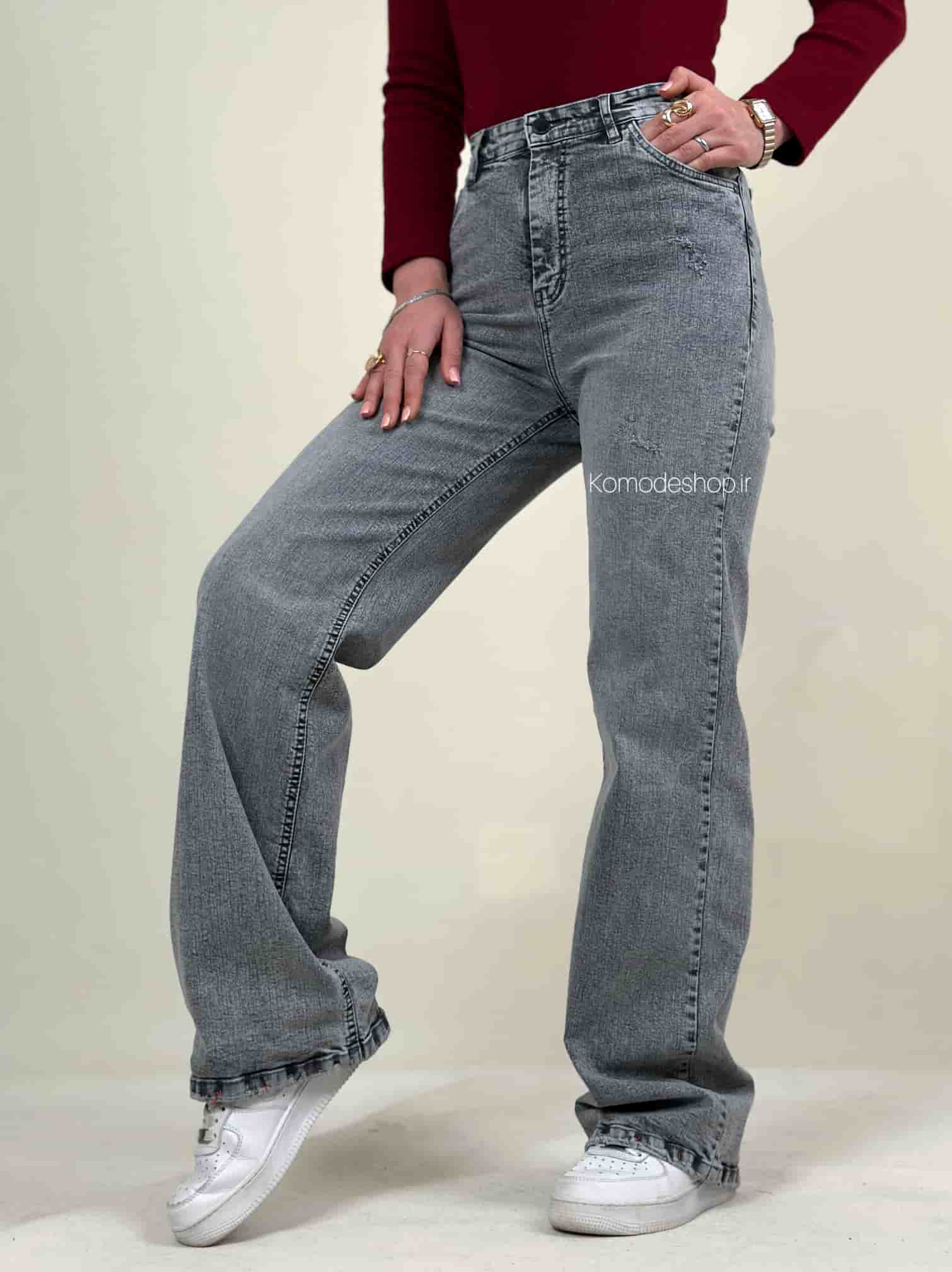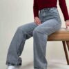 شلوار واید استریت زنانه طوسی کمر ساده با پارچه جین کشی ترک سنگشور، قد 105 سانت، کیفیت تضمینی. طراحی خاص و راحت برای استایل روزمره و نیمهرسمی.
