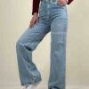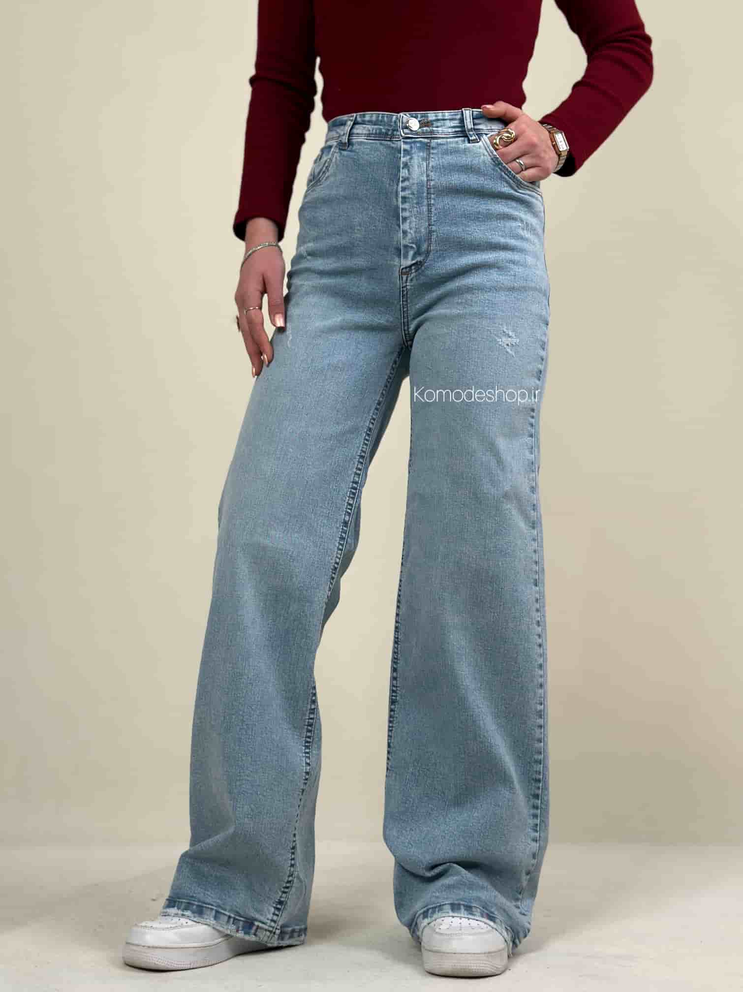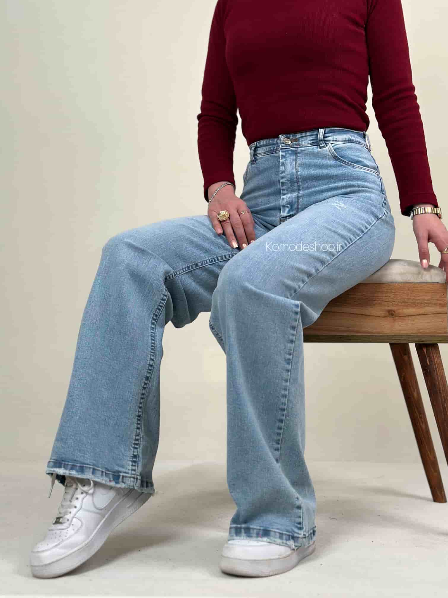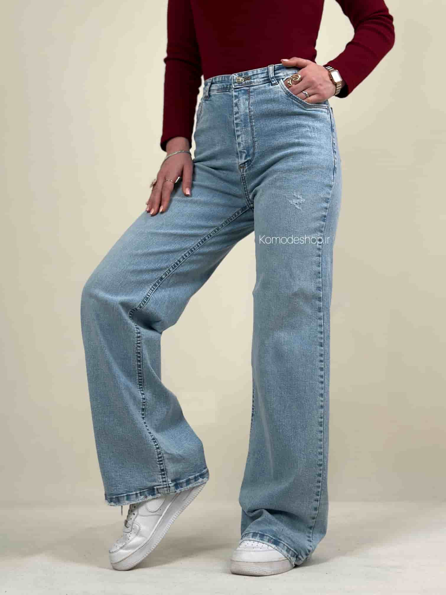 شلوار واید استریت زنانه یخی کمر ساده با پارچه جین کشی ترک سنگشور، قد 105 سانت، کیفیت تضمینی. طراحی خاص و راحت برای استایل روزمره و نیمهرسمی.