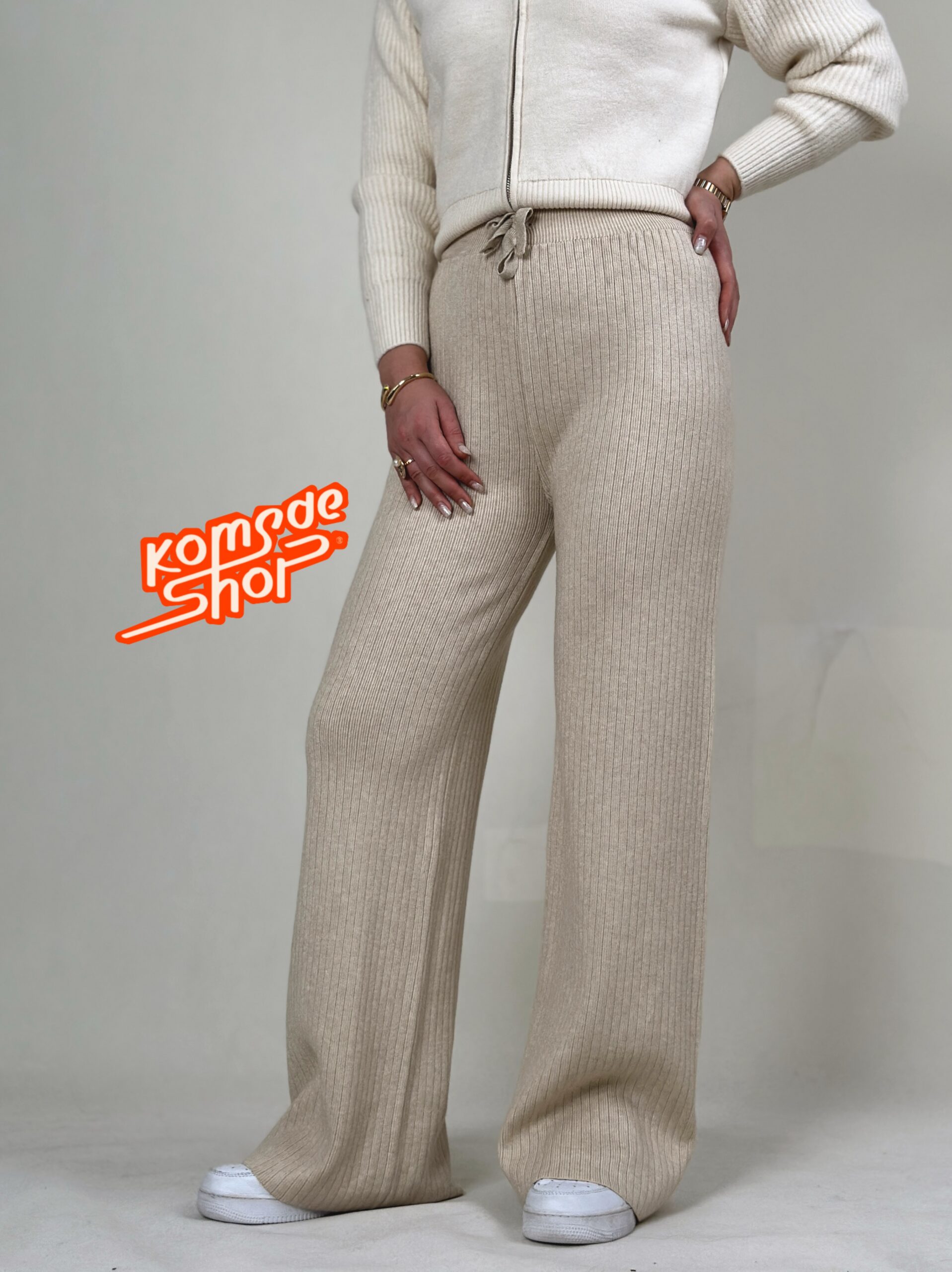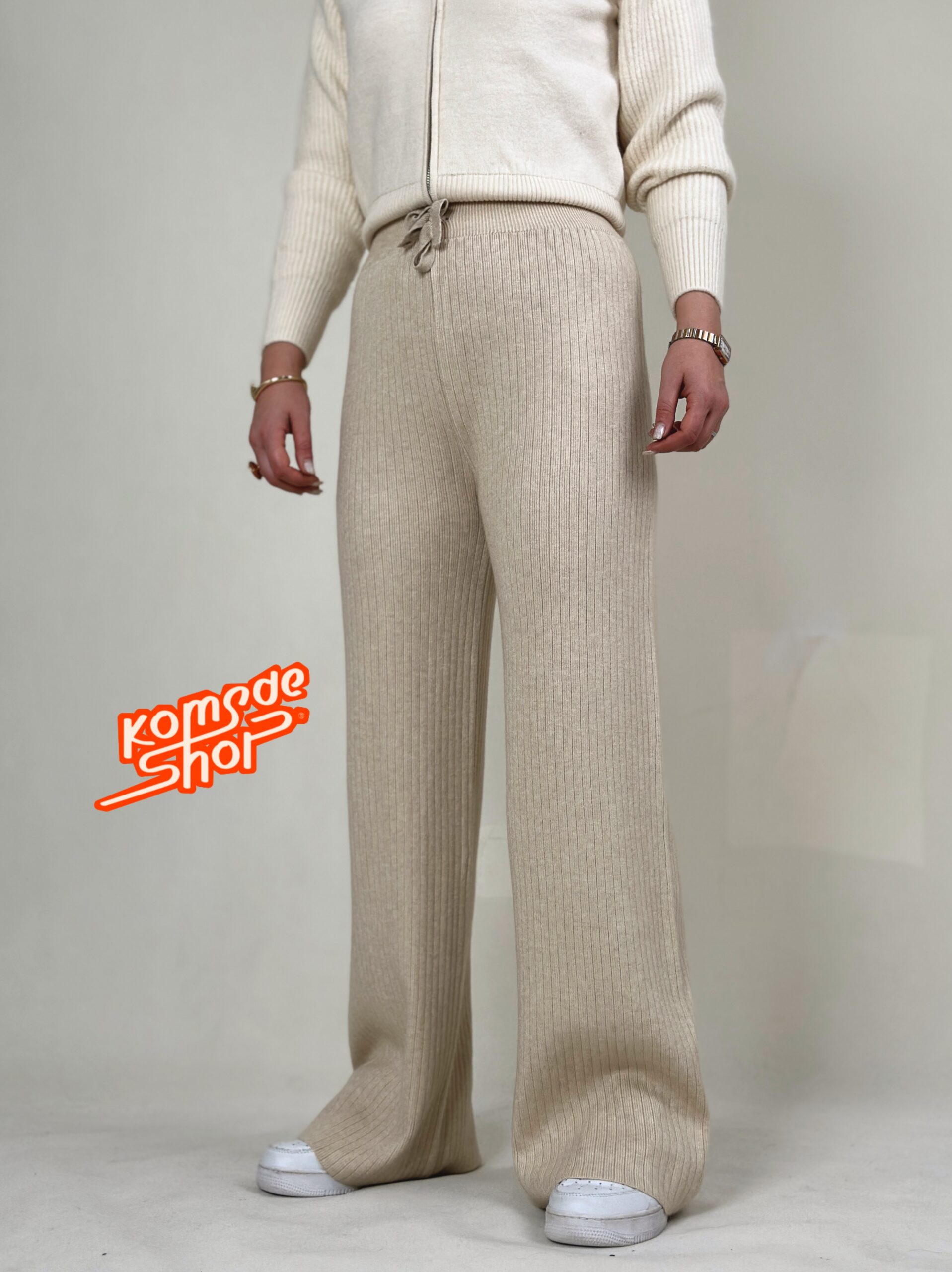 شلوار واید بافت ترک با پارچه گرم، نرم و ضد حساسیت، فریسایز و خوشفرم با کمر گتدار کشی. مناسب استایلهای زمستونی شیک و راحت در چهار رنگ جذاب.