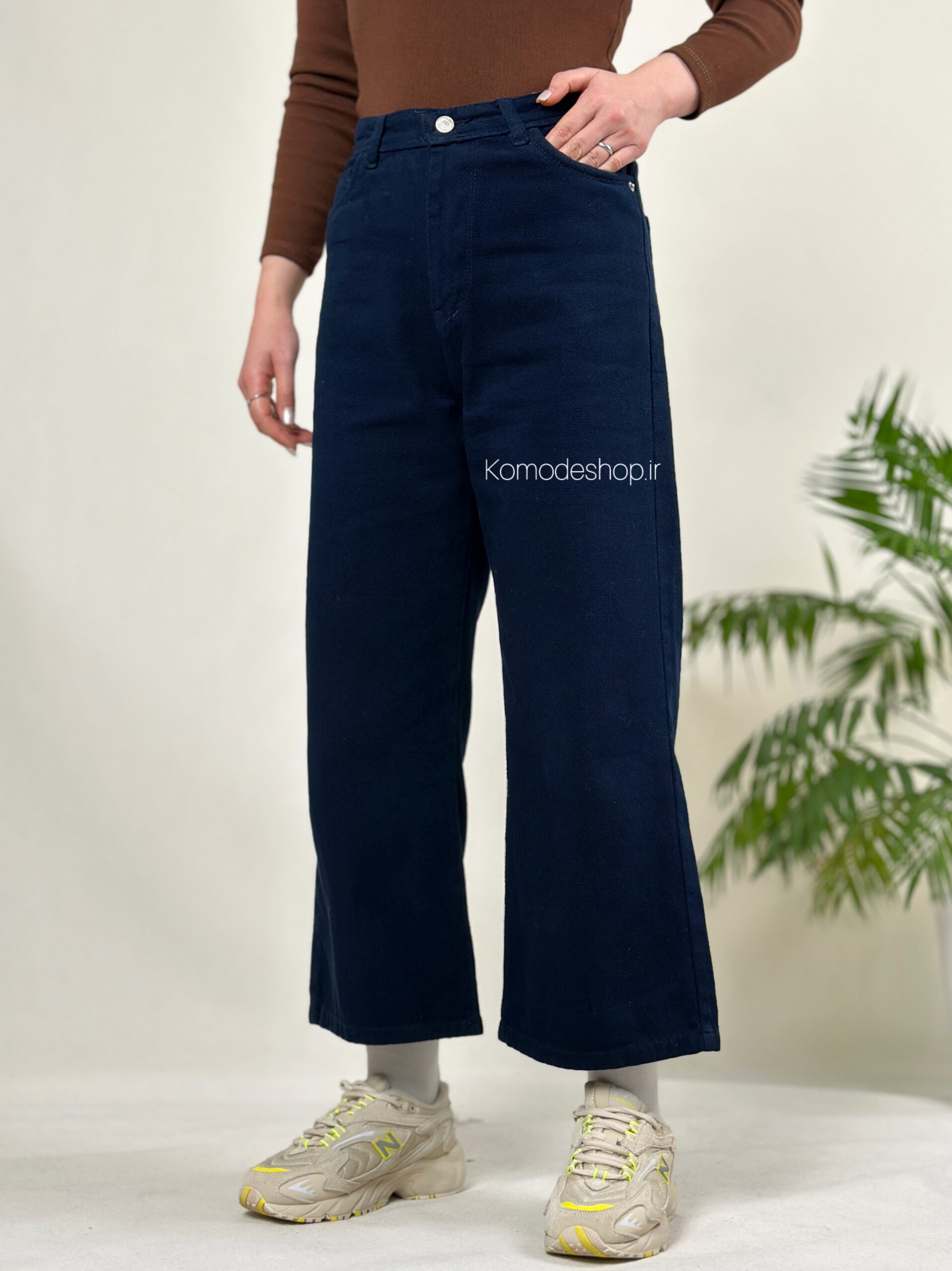 شلوار واید لگ کتان، شلوار واید لگ کتان بسگوییتی سرمه ای، یکی از انتخابهای عالی برای استایل روزمره شماست! با پارچه کتان بسگوییتی که به آنزیمشده است و هیچ رنگ رفت و آبرفتی ندارد، راحتی و شیک بودن را برای شما به ارمغان میآورد. قد شلوار ۹۰ سانت است که ظاهری بلند و شیک به شما میدهد.