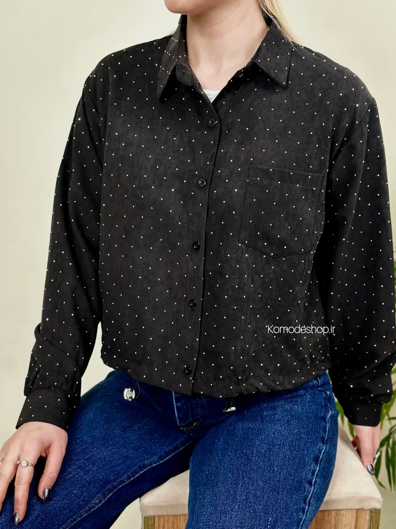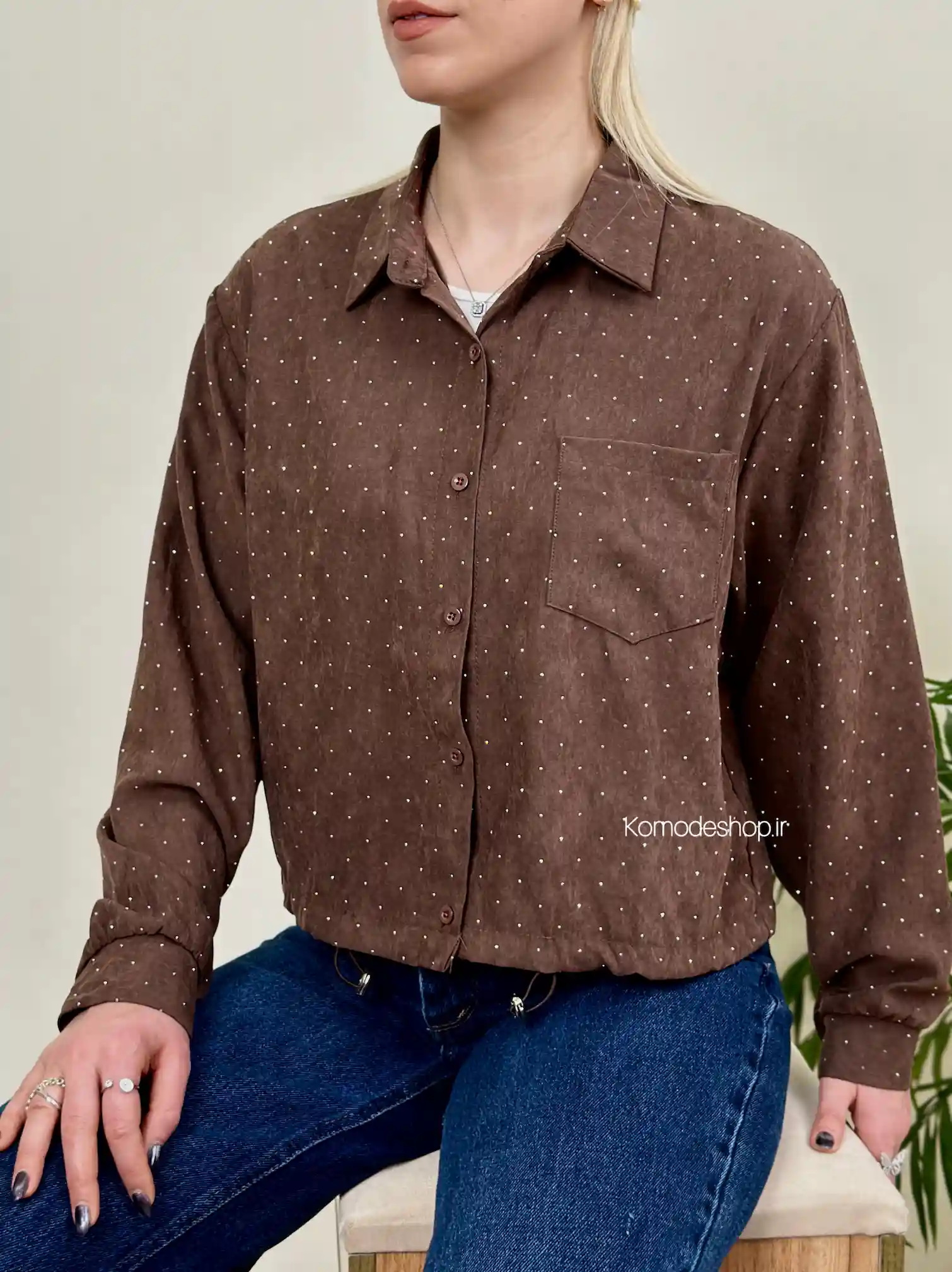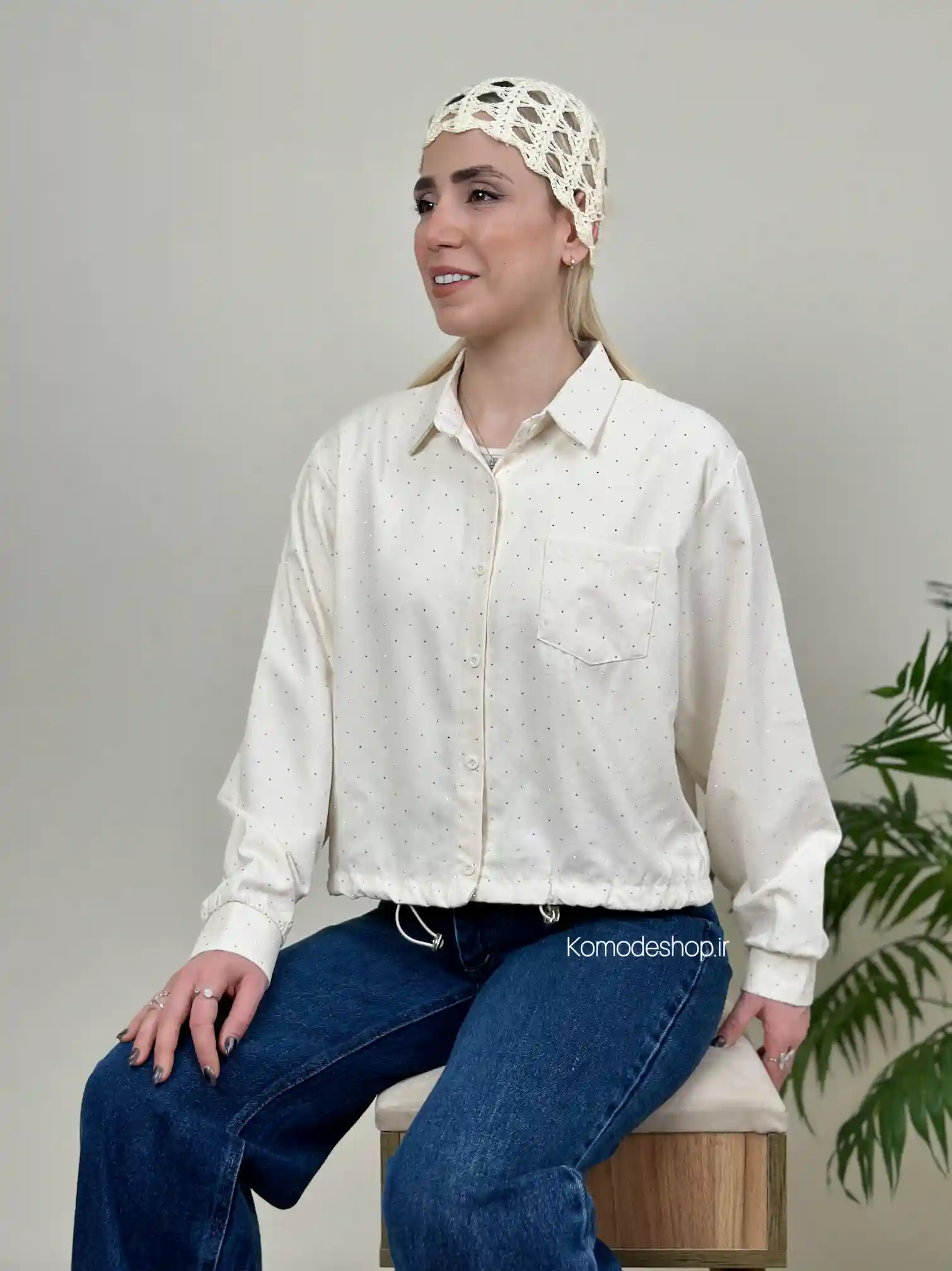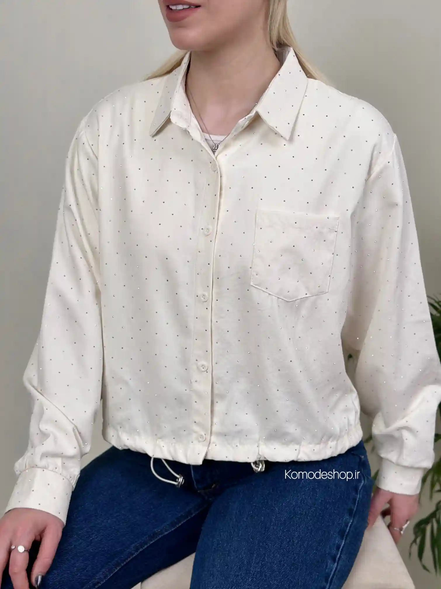 آنچه این شومیز کراپ دخترانه را از مدلهای ساده بازار متمایز میکند، نگینکاری ظریف روی آن است. این نگینها جلوهای درخشان و جذاب به لباس میدهند بدون اینکه ظاهر آن را شلوغ یا اغراقآمیز کنند. همین تعادل بین سادگی و درخشش، این مدل را به گزینهای مناسب برای استایلهای دخترانه و فانتزی تبدیل کرده است.