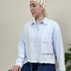 این ابعاد باعث میشود شومیز روی بدن ایستایی مناسبی داشته باشد و در عین کراپ بودن، فرم زیبایی ایجاد کند.