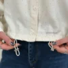 یکی از جزئیات کاربردی در شومیز کراپ دخترانه نگین وجود گتر در قسمت پایین لباس است. این طراحی به شما این امکان را میدهد که در صورت تمایل، پایین شومیز را جمع کرده و حالت فیتتر و جذابتری ایجاد کنید. همچنین میتوانید آن را آزاد بگذارید تا استایلی راحتتر و مینیمالتر داشته باشید.