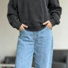 تنخور آزاد و راحت، فریسایز بودن و رنگ زغالیِ همیشهشیک، باعث میشه خیلی راحت با انواع شلوار جین، بگ، مامفیت یا لگ ترکیب بشه.