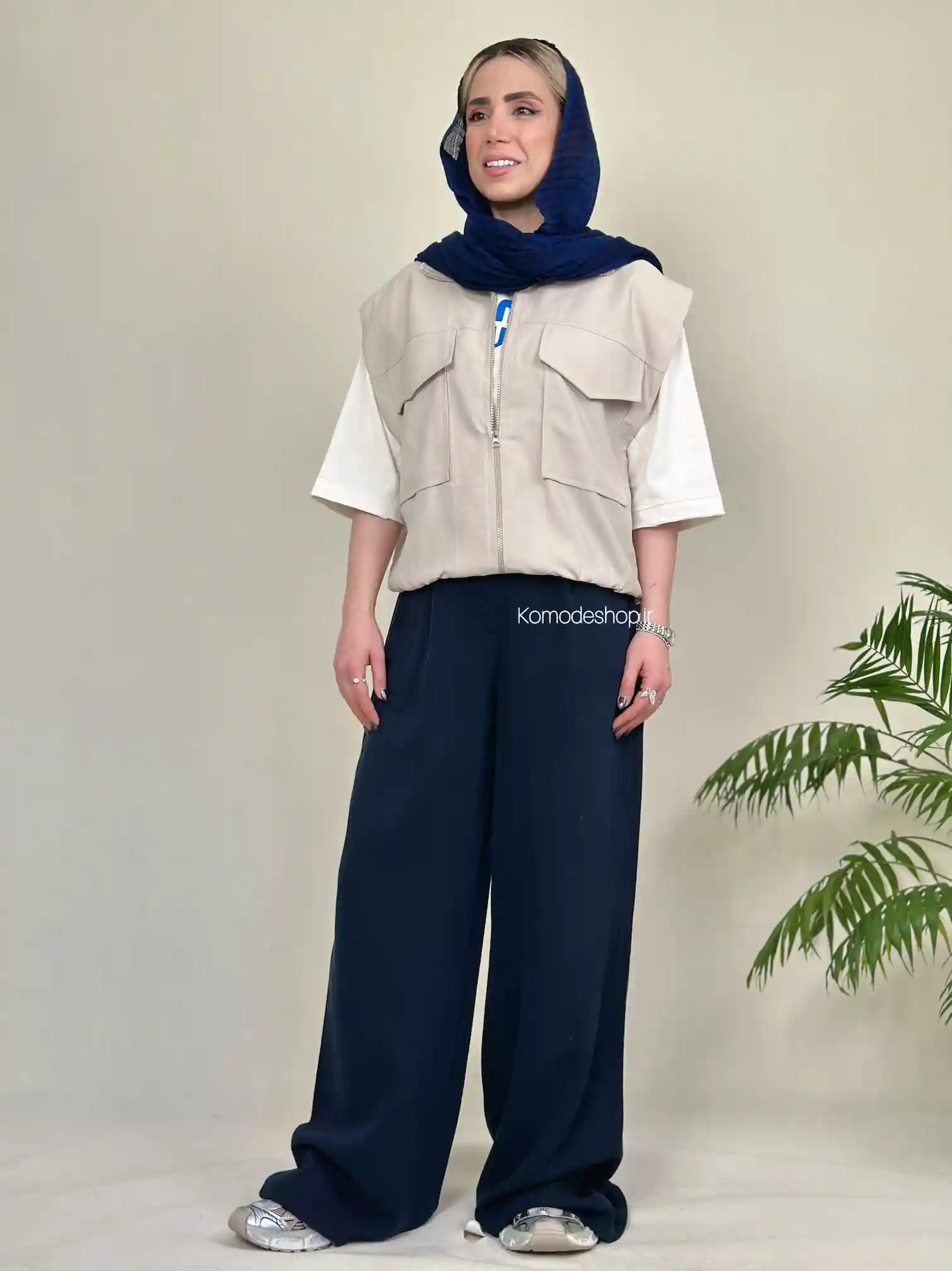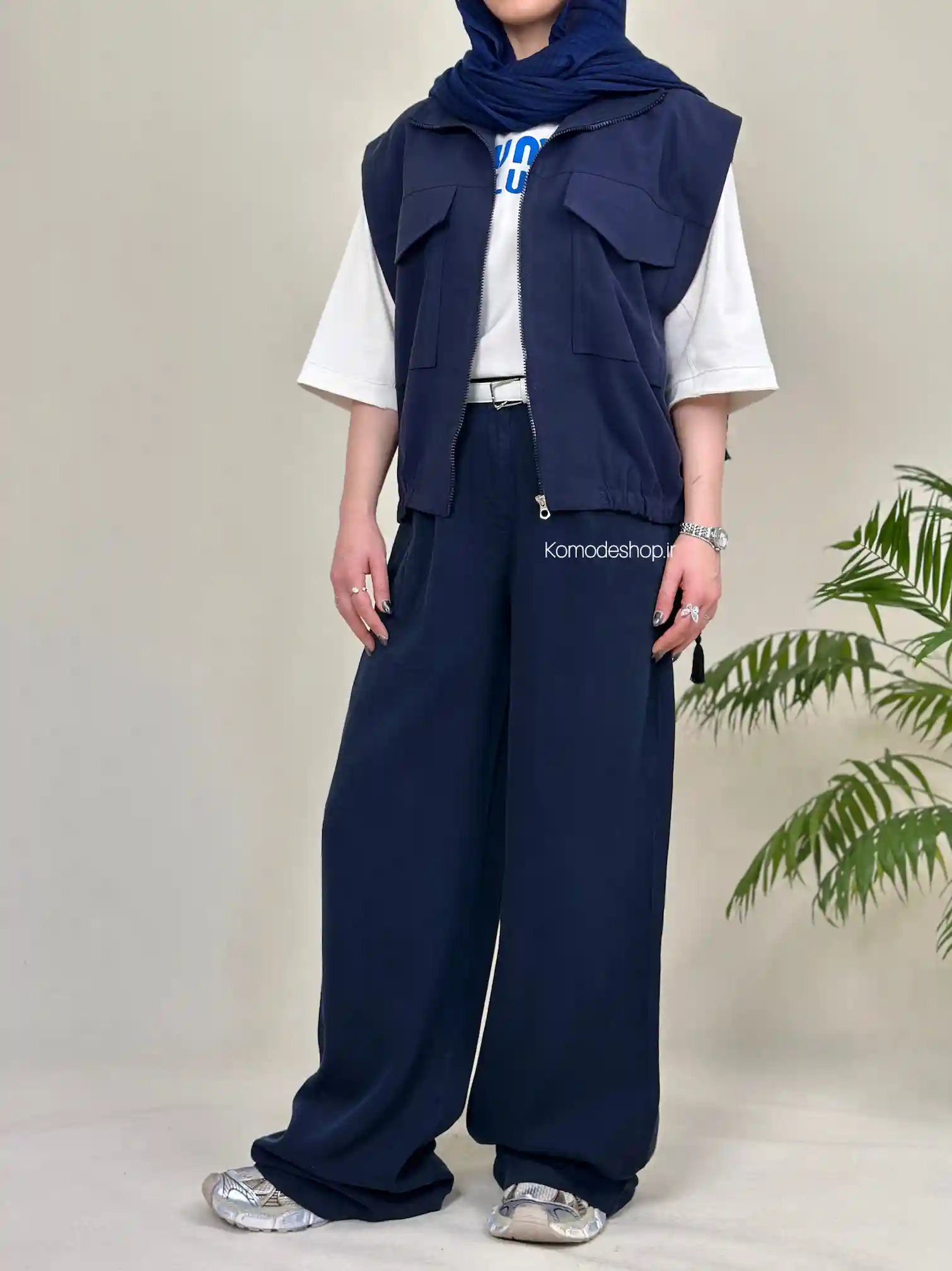 وست سیلک زنانه + شومیز سفید یا مشکی + شلوار بگ یا مام فیت
