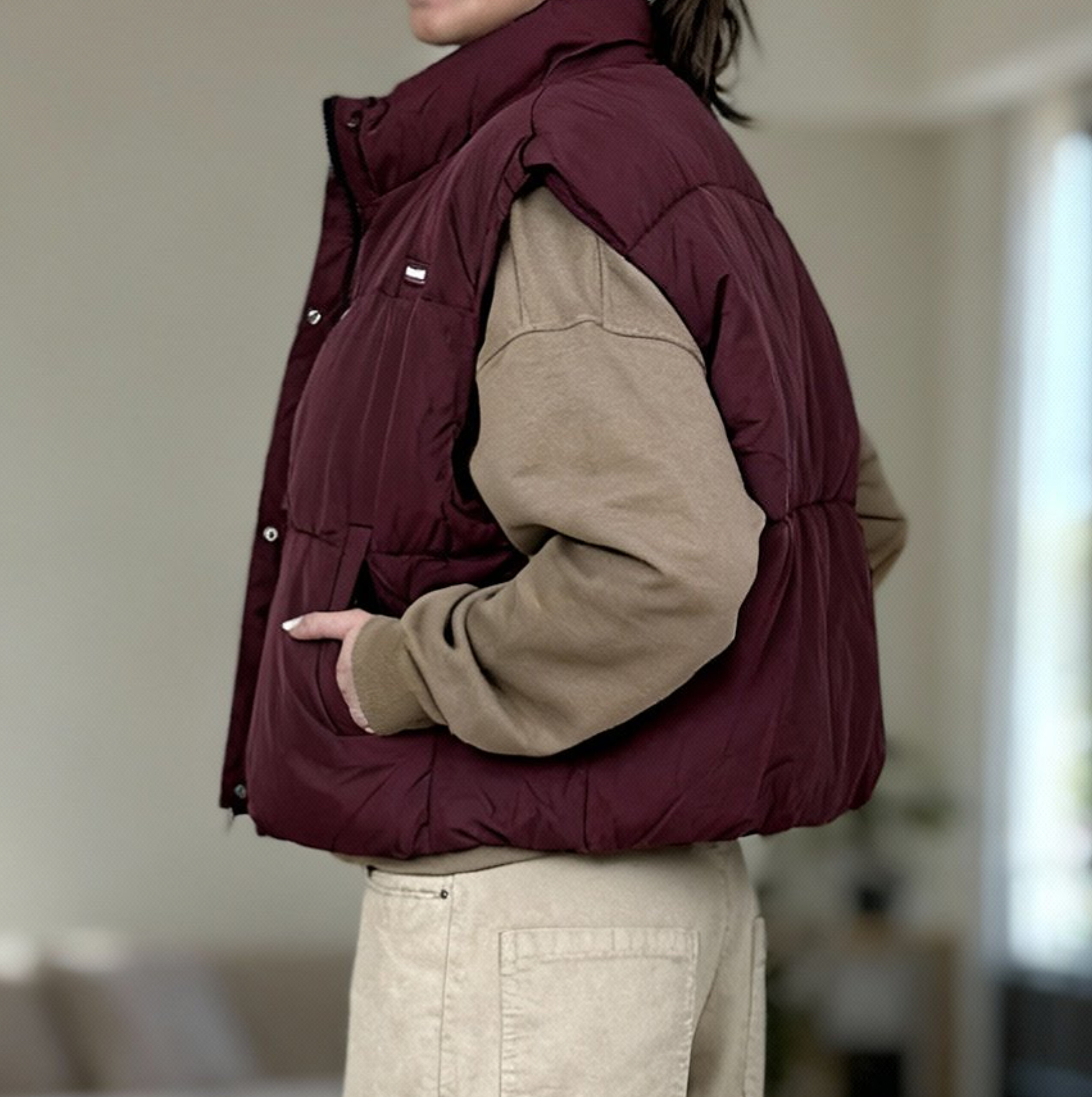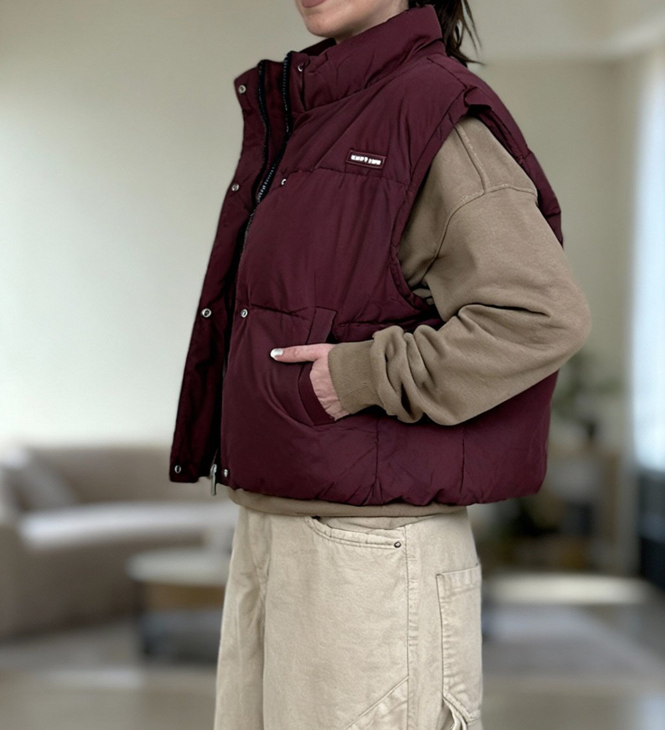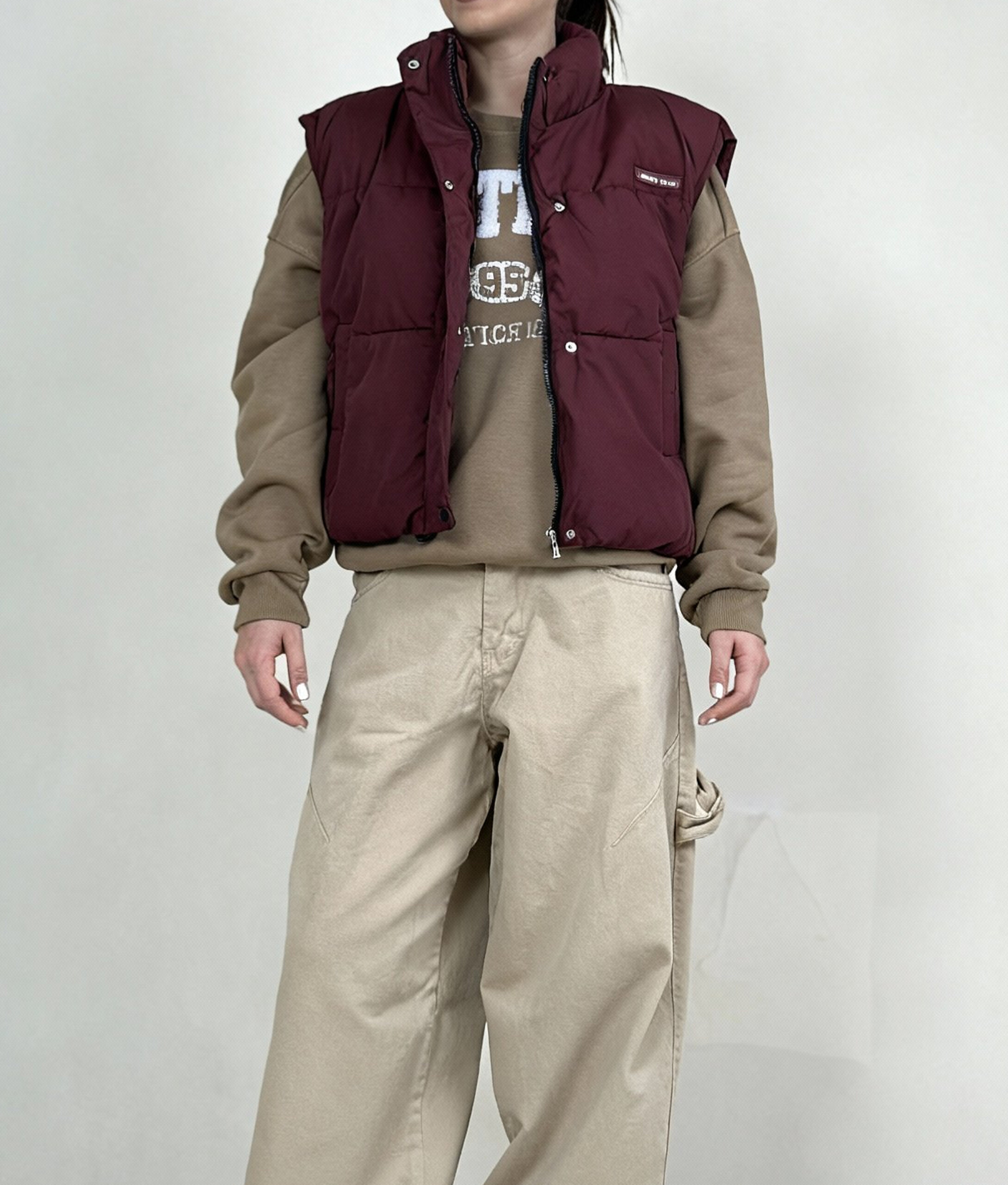وست پافر وارداتی RNBT با پشم‌شیشه گرم بالا، آستردار و بسیار سبک. گت تنظیمی در پایین دارد و در دو سایز عرضه می‌شود. مناسب استایل پاییزه و زمستانه، در رنگ‌های زرشکی و سفید.