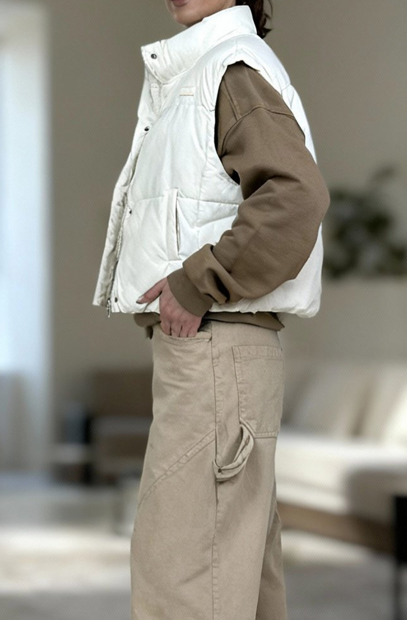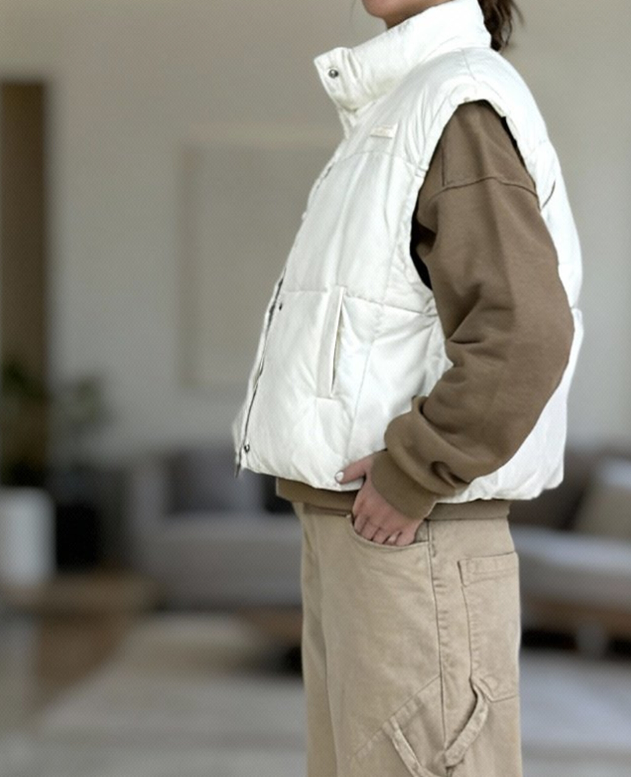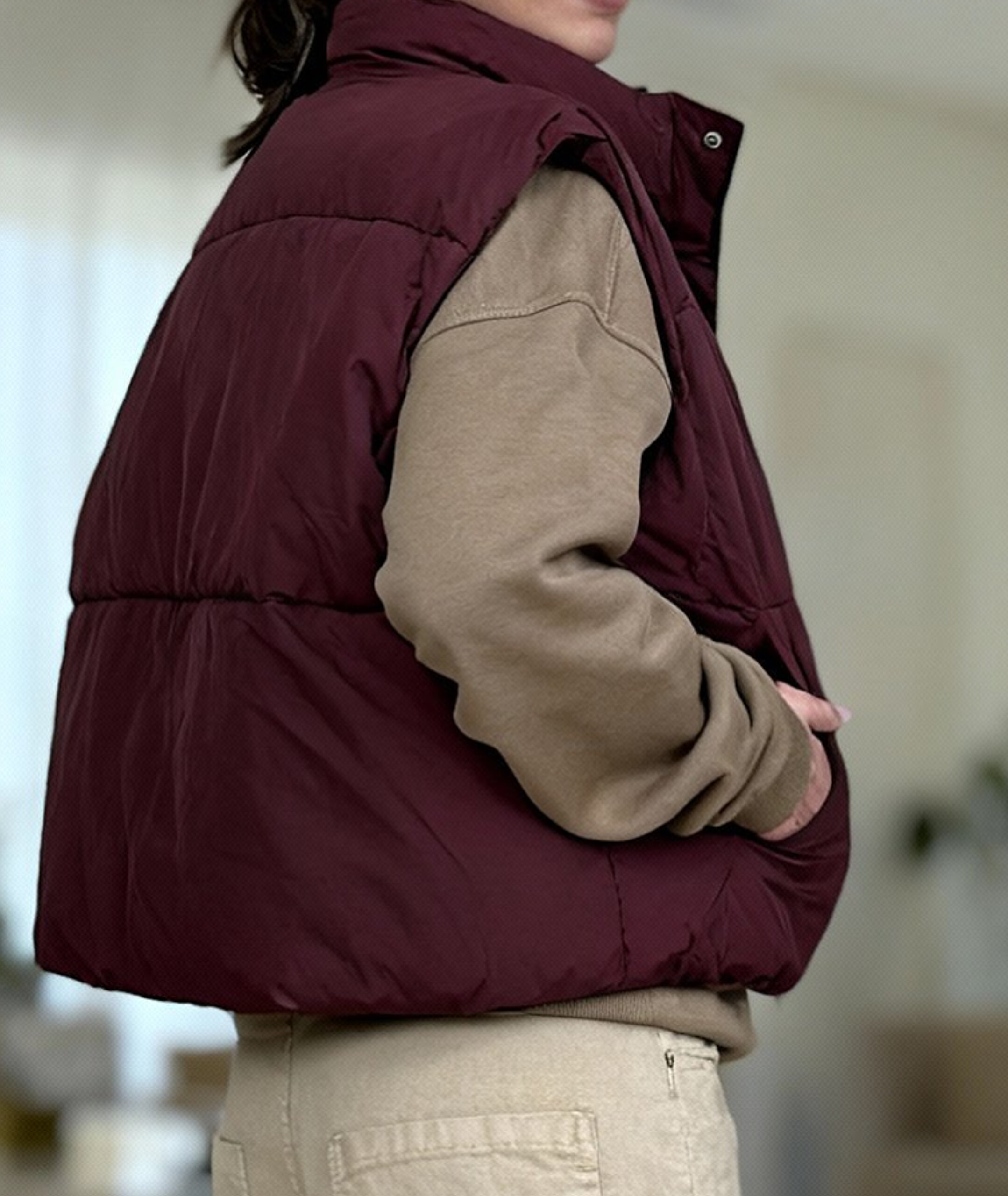 وست پافر وارداتی RNBT با پشم‌شیشه گرم بالا، آستردار و بسیار سبک. گت تنظیمی در پایین دارد و در دو سایز عرضه می‌شود. مناسب استایل پاییزه و زمستانه، در رنگ‌های زرشکی و سفید.