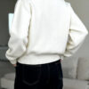 کاردیگن بافت زنانه با طرح راه‌راه، صددرصد پنبه، نرم و گرم با تراکم بالا. فری‌سایز، وارداتی و مناسب استایل پاییزه و زمستانه، در رنگ استخونی.