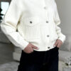 کاردیگن بافت زنانه با طرح راه‌راه، صددرصد پنبه، نرم و گرم با تراکم بالا. فری‌سایز، وارداتی و مناسب استایل پاییزه و زمستانه، در رنگ استخونی.